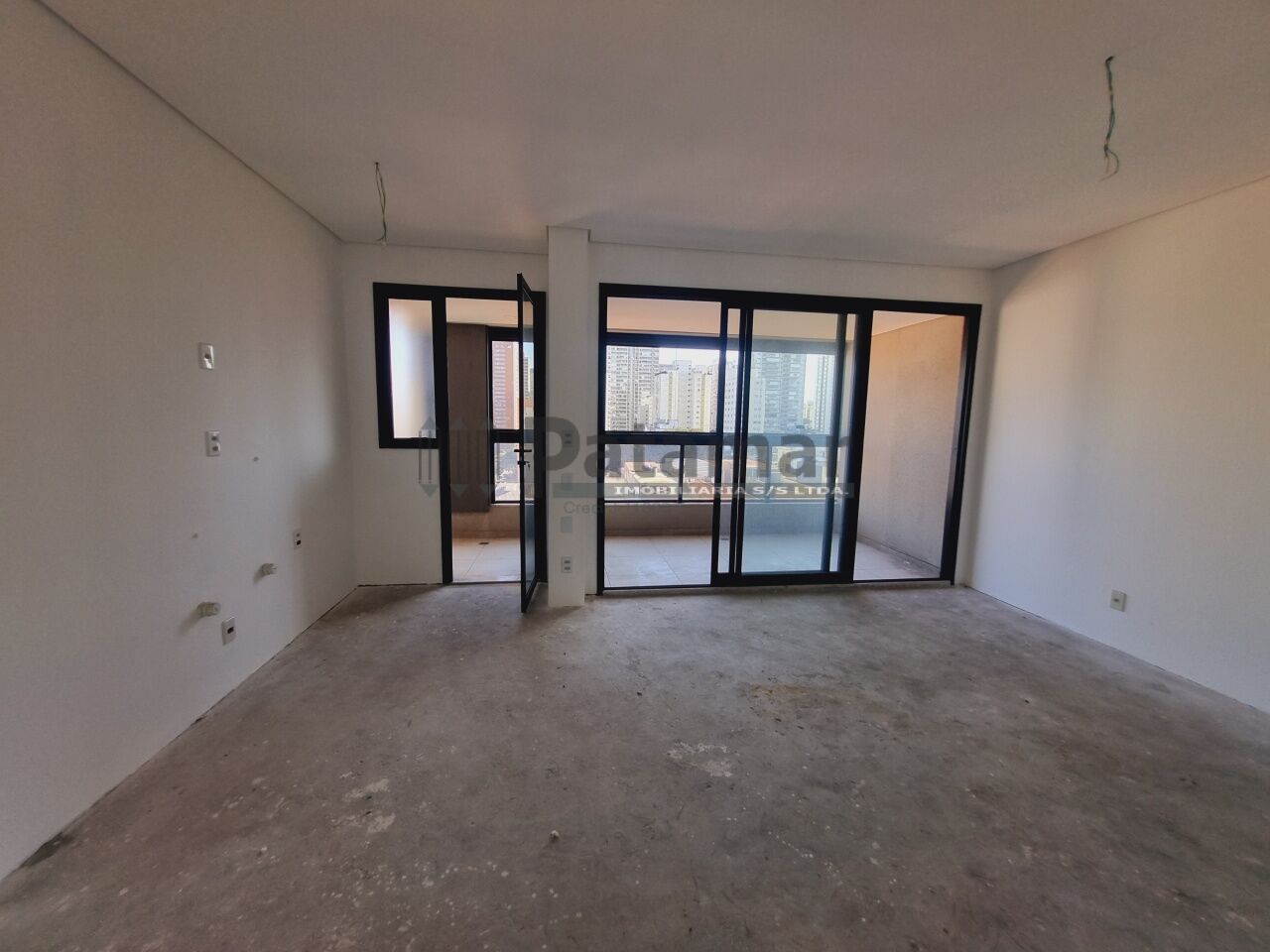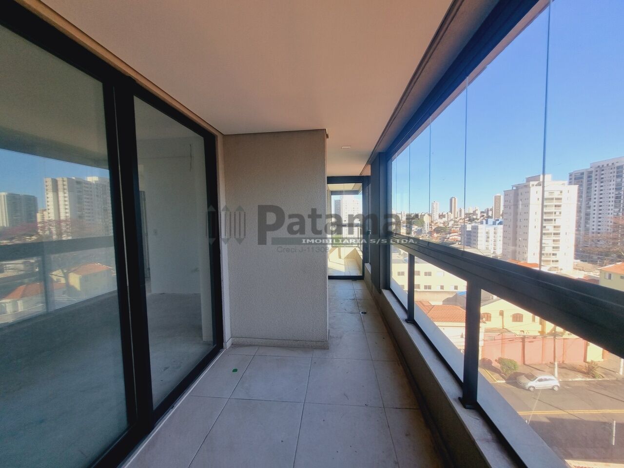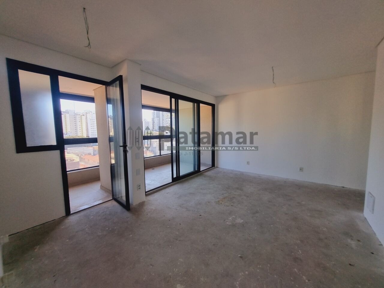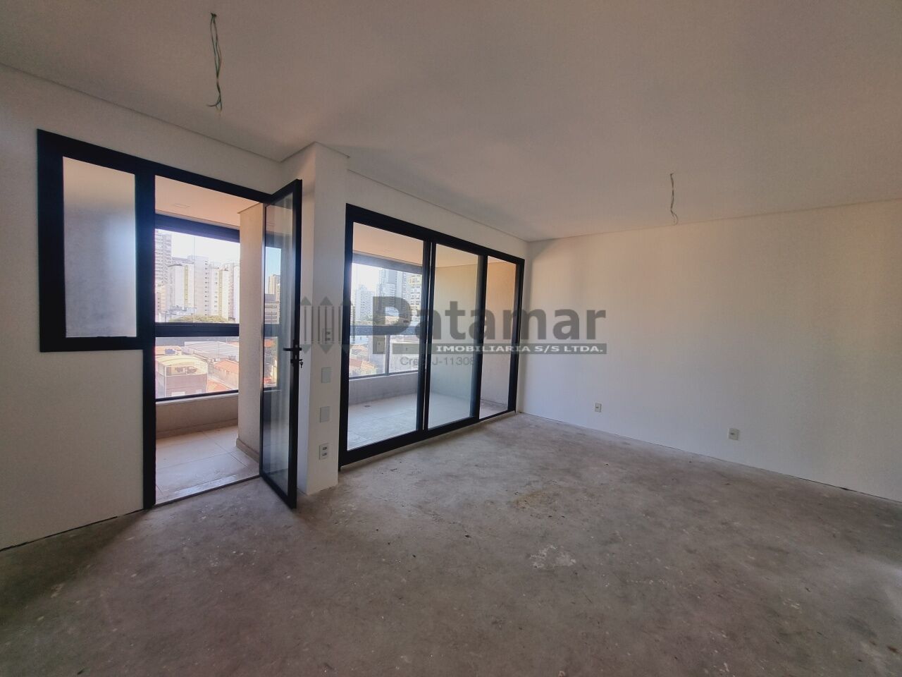 Sala para dois ambientes integrada ao terraço estendido envidraçado, cozinha americana e 2 banheiros.