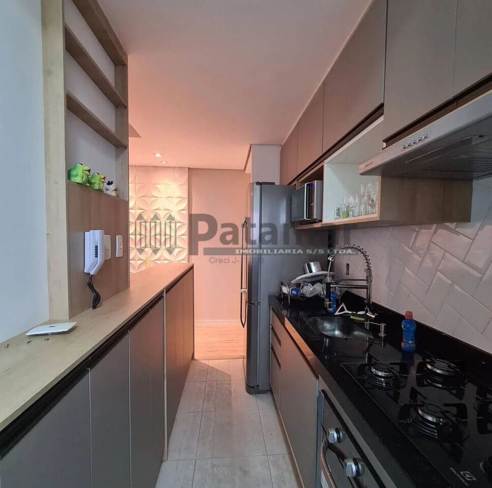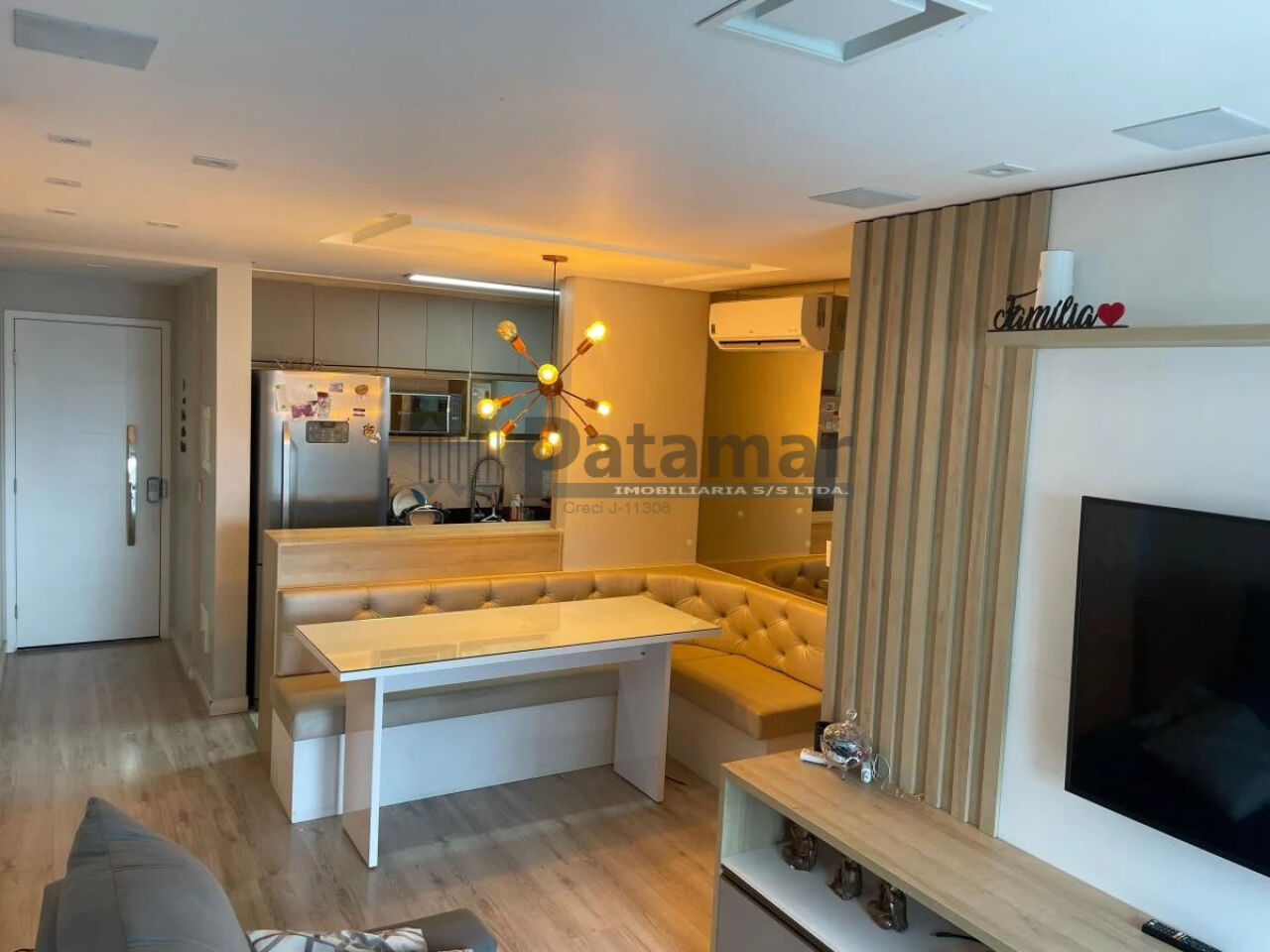 Apartamento 3 dormitórios, sendo 1 suíte, cozinha americana planejada e equipada tornando-a bem funcional, sala de jantar estilizada com sofá em curva na parede em volta da mesa, projeto de iluminação do apartamento cuidadosamente planejado para uma iluminação confortável e intimista.