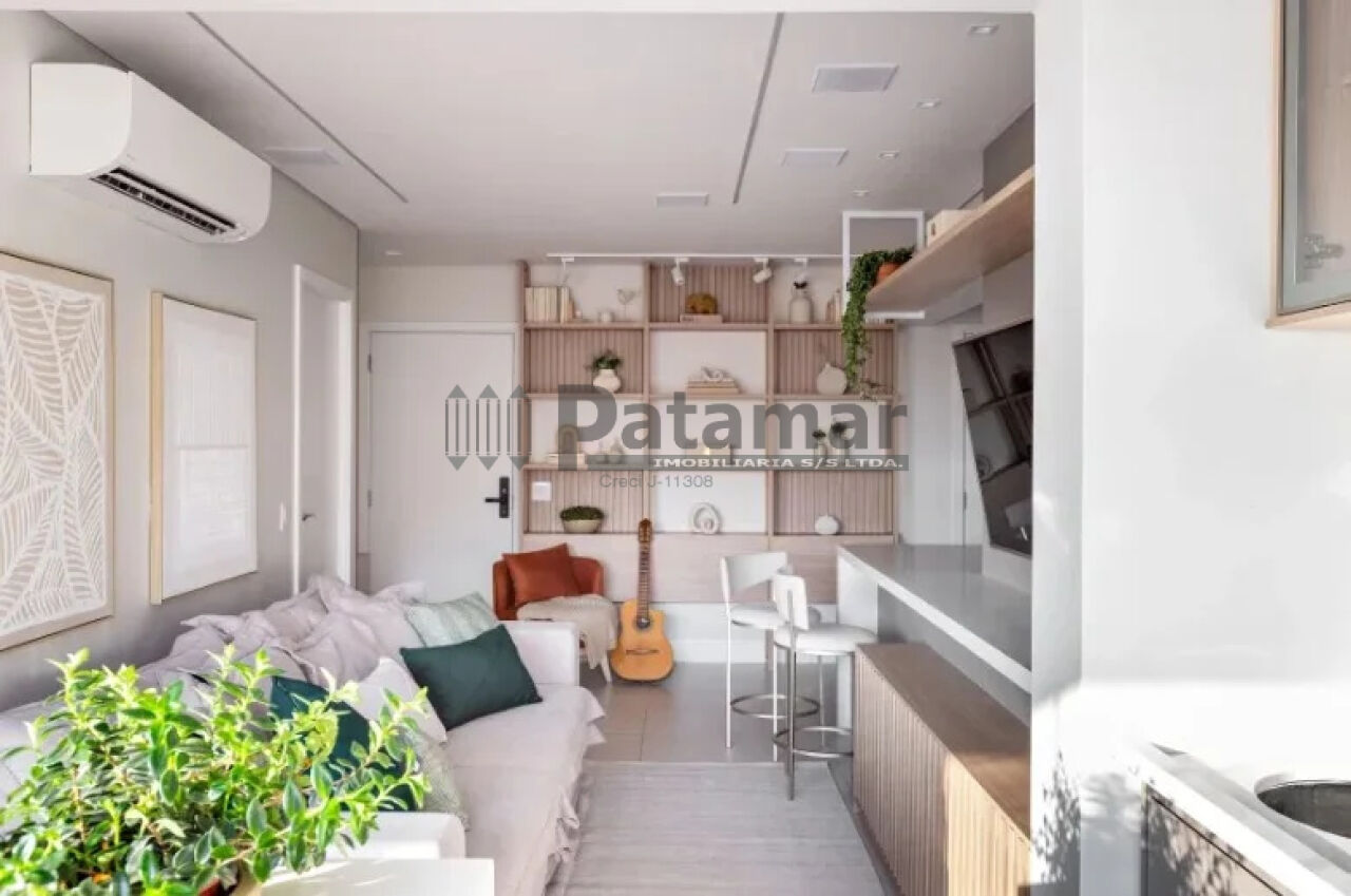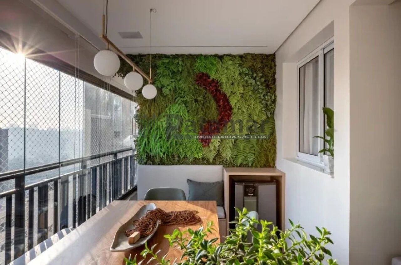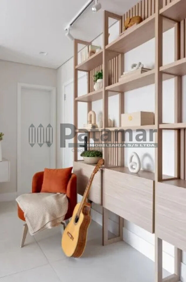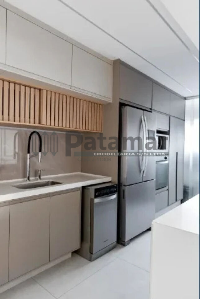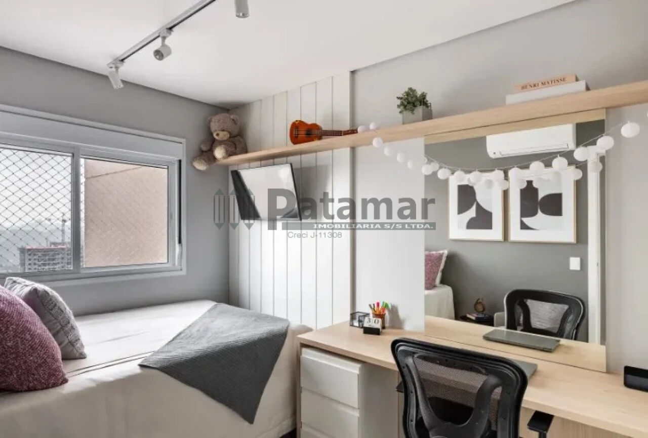 Apartamento dispõe de três quartos, sendo uma suíte, e quatro banheiros,
