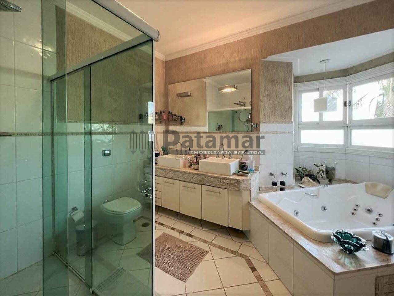 Banheiros com tampos em mármore, espelho, gabinetes e box de vidro. A máster com 2 cubas e hidro dupla panorâmica.