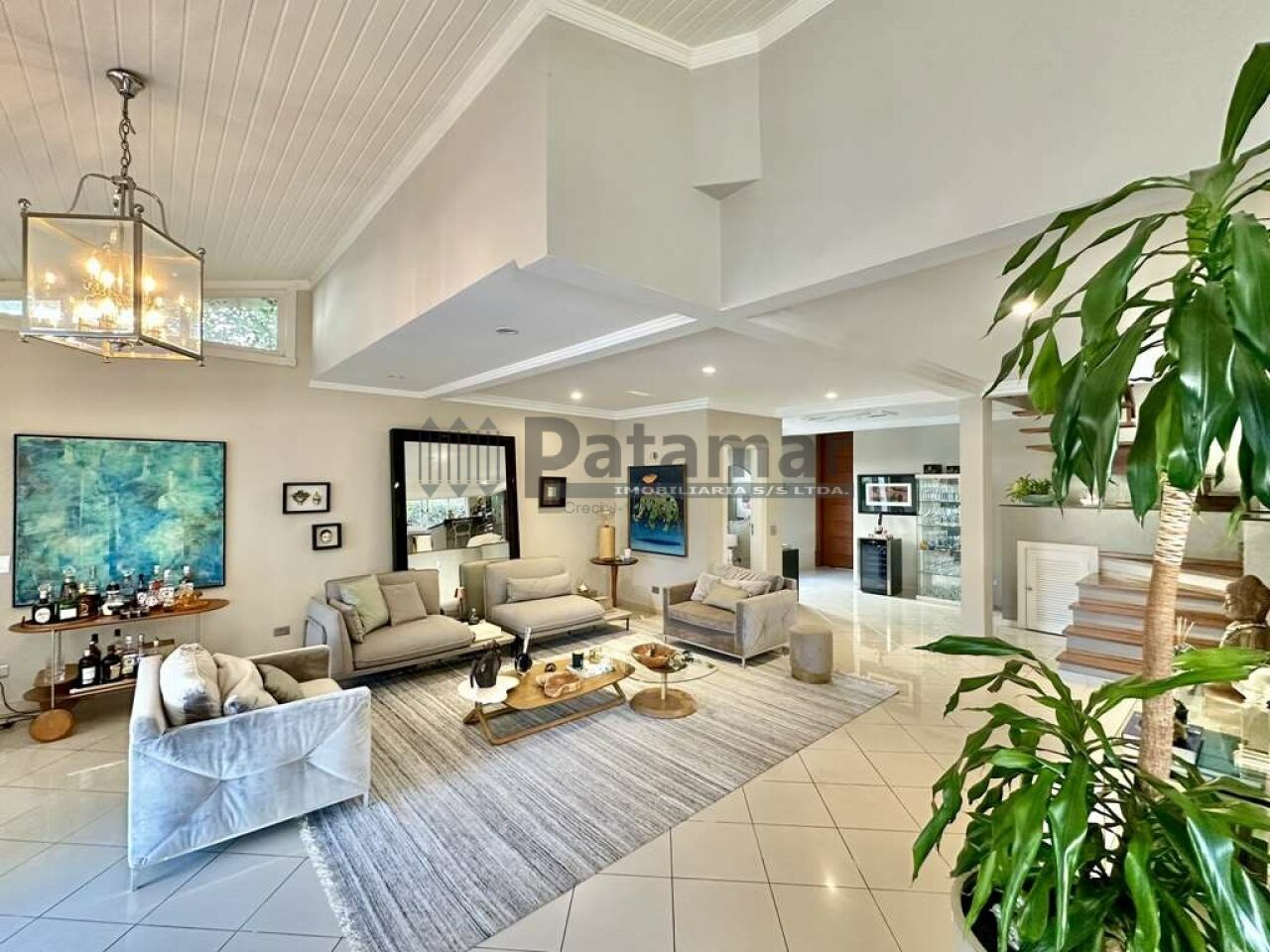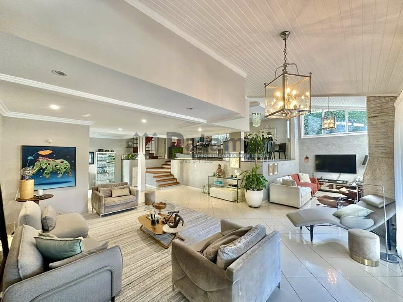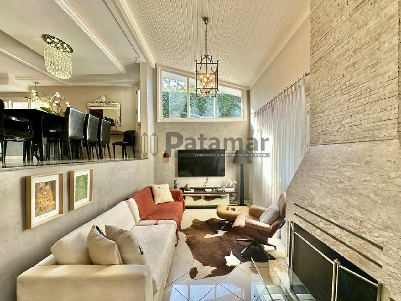 Living com 6 ambientes integrados em 2 níveis, voltados para varanda, piscina e jardim com linda vista.