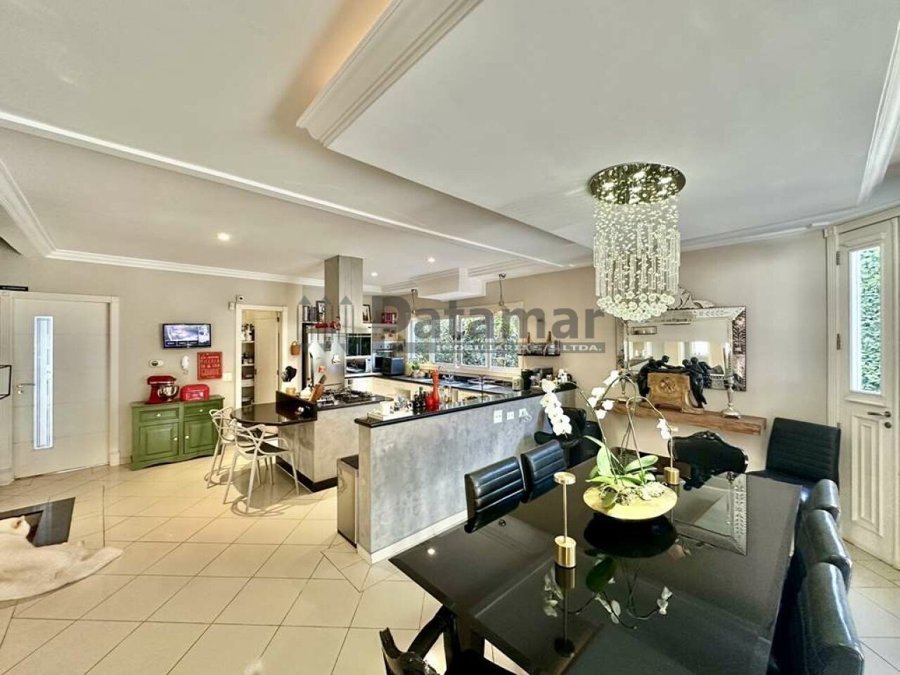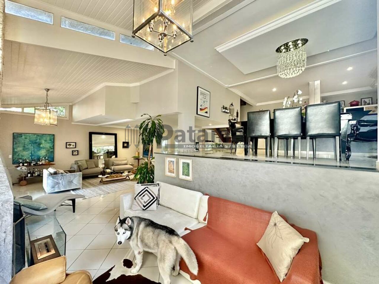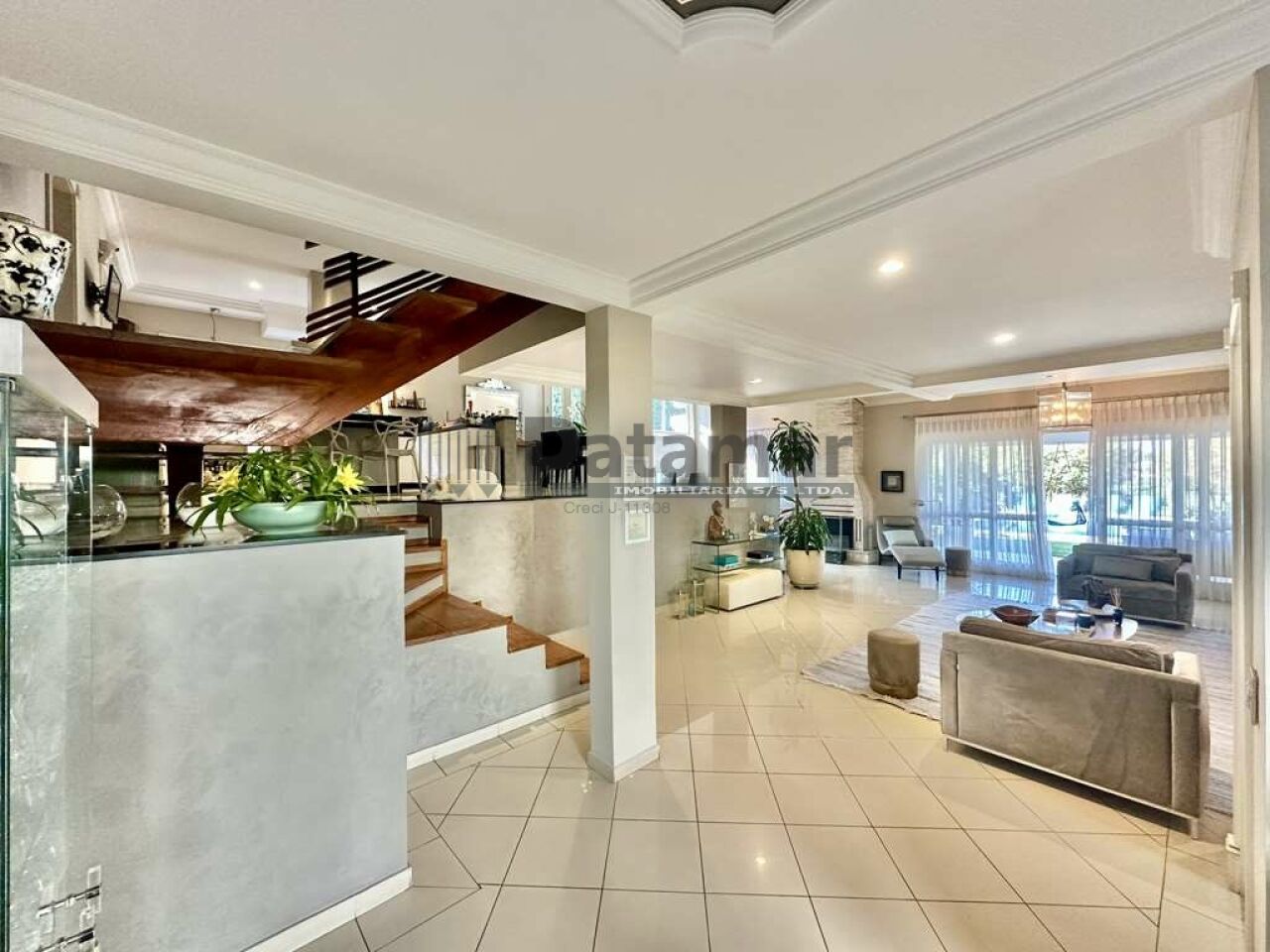 Living com 6 ambientes integrados em 2 níveis, voltados para varanda, piscina e jardim com linda vista.