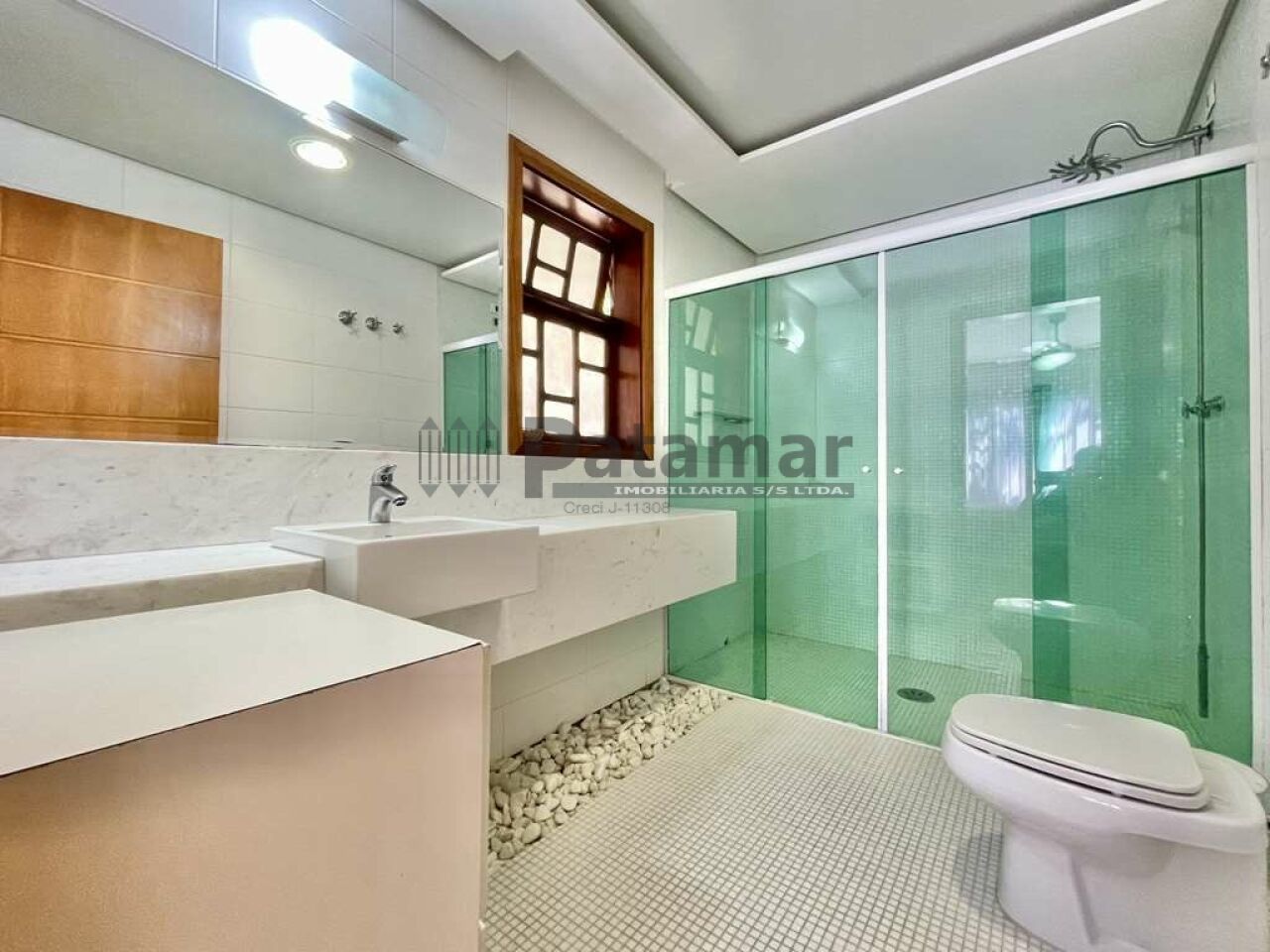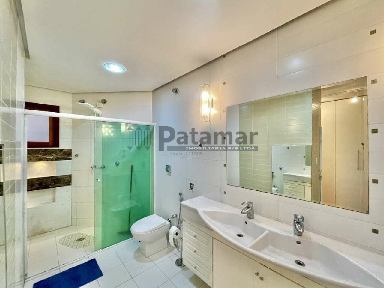 Banheiros com espelho, gabinetes, box de vidro e nichos, sendo a master com 2 cubas em cerâmica e hidro dupla.