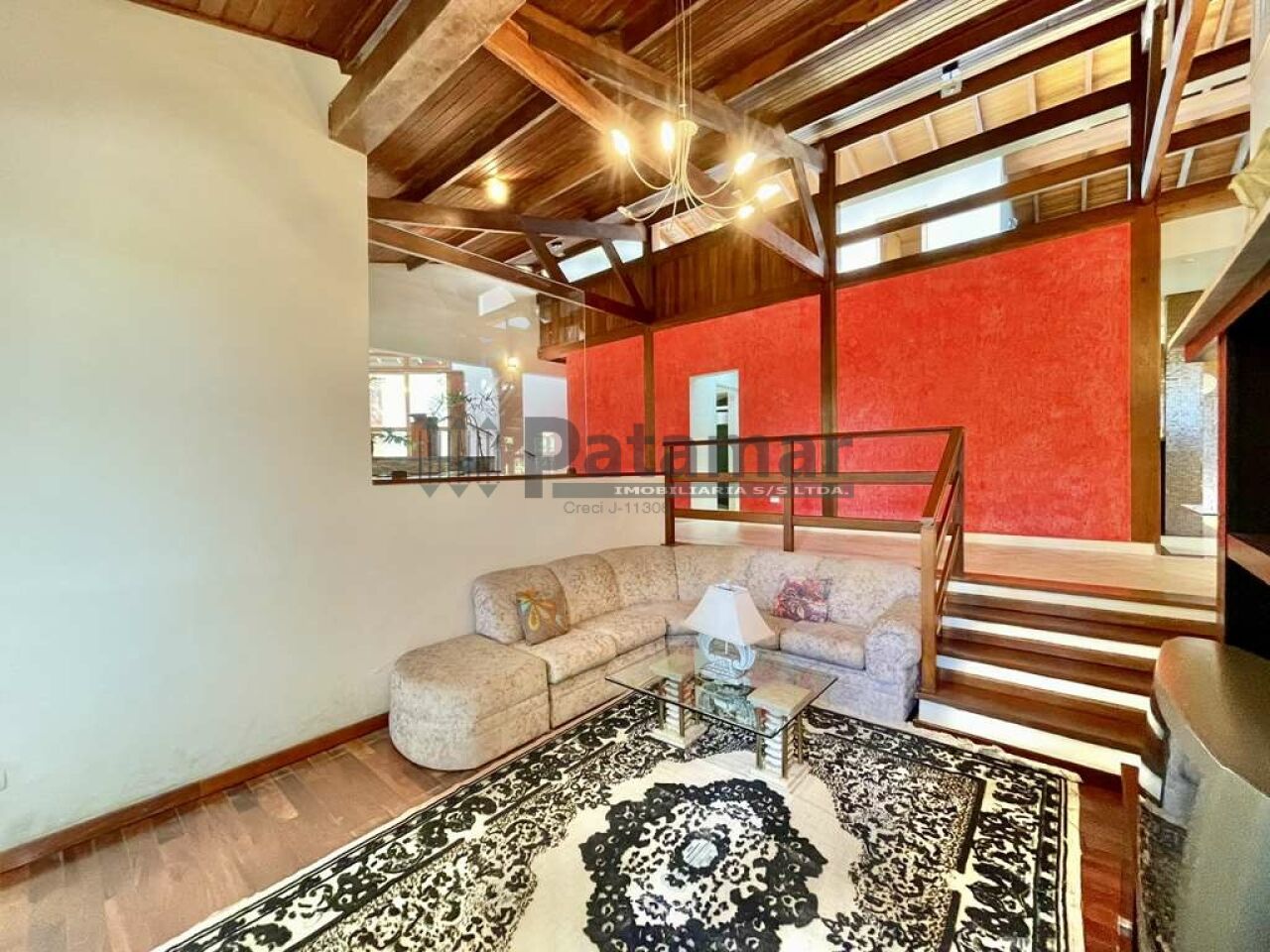 Estar, jantar, bar, lareira em canjiquinha e um SPA em deck com Hidro Jacuzzi aquecida, para 12 pessoas na sala.
