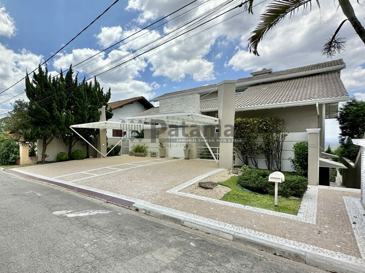 Garagem com duas coberturas de design moderno de ferro e policarbonato (2 vagas), com piso em mosaico português. Mais 2 vagas descobertas.