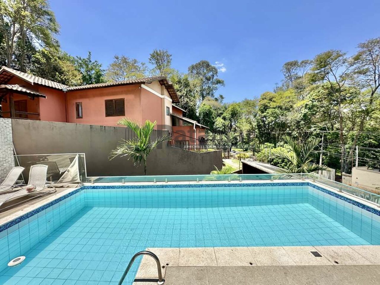 Piscina de alvenaria 7m x 3,5m revestida em azulejo, iluminada, com aquecimento solar, escada, solarium e casa de máquinas.