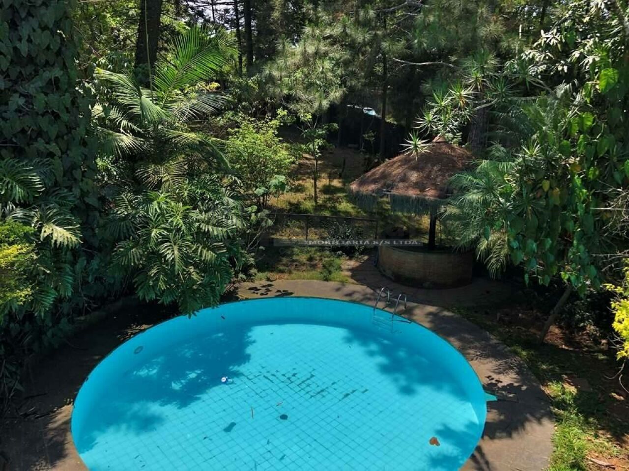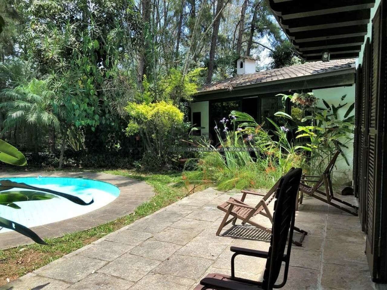 A garagem tem capacidade para 6 carros, sendo 3 vagas cobertas e fechadas. O imóvel está localizado em uma área privilegiada, cercada por natureza e com total privacidade.