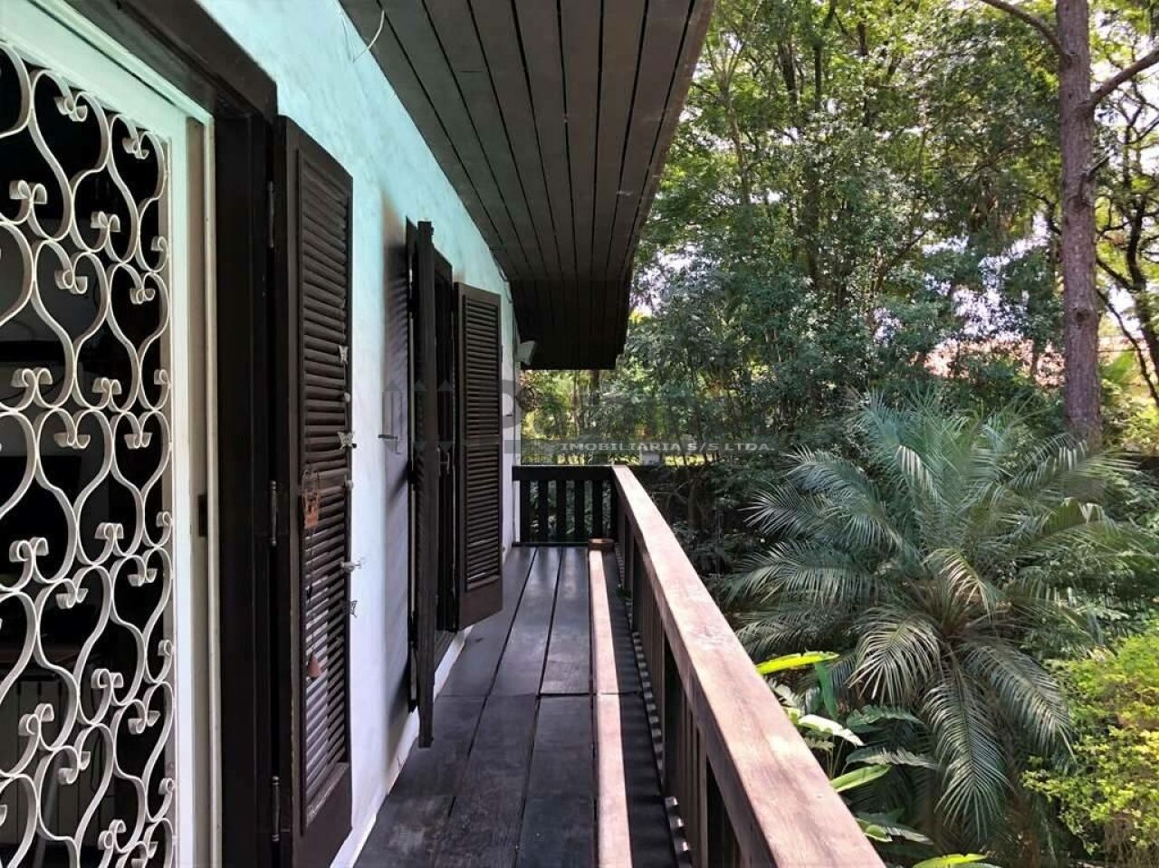 No piso superior, as 3 suítes possuem armários embutidos, bancadas, portas balcão para o terraço deck, guarda-corpo de madeira e linda vista para o jardim, sendo a suíte master equipada com closet, sapateira e hidro. O imóvel ainda conta com um jardim de inverno e dependências de serviço separadas.