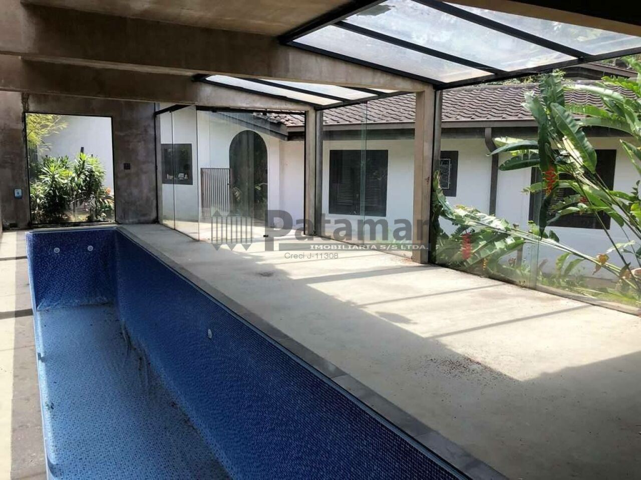 O imóvel oferece 4 entradas distintas (social, garagem, lazer e serviço), com um hall de entrada social que dá acesso às áreas íntima, social e de serviço. O living é composto por 4 ambientes voltados para o quintal, que conta com piscina e grande jardim. A casa também possui salas de estar, lareira, bar e jantar, todas com ótimos armários embutidos, além de uma sala de almoço e cozinha repleta de armários planejados, bancada em aço escovado e ilha com fogão, coifa e pia.