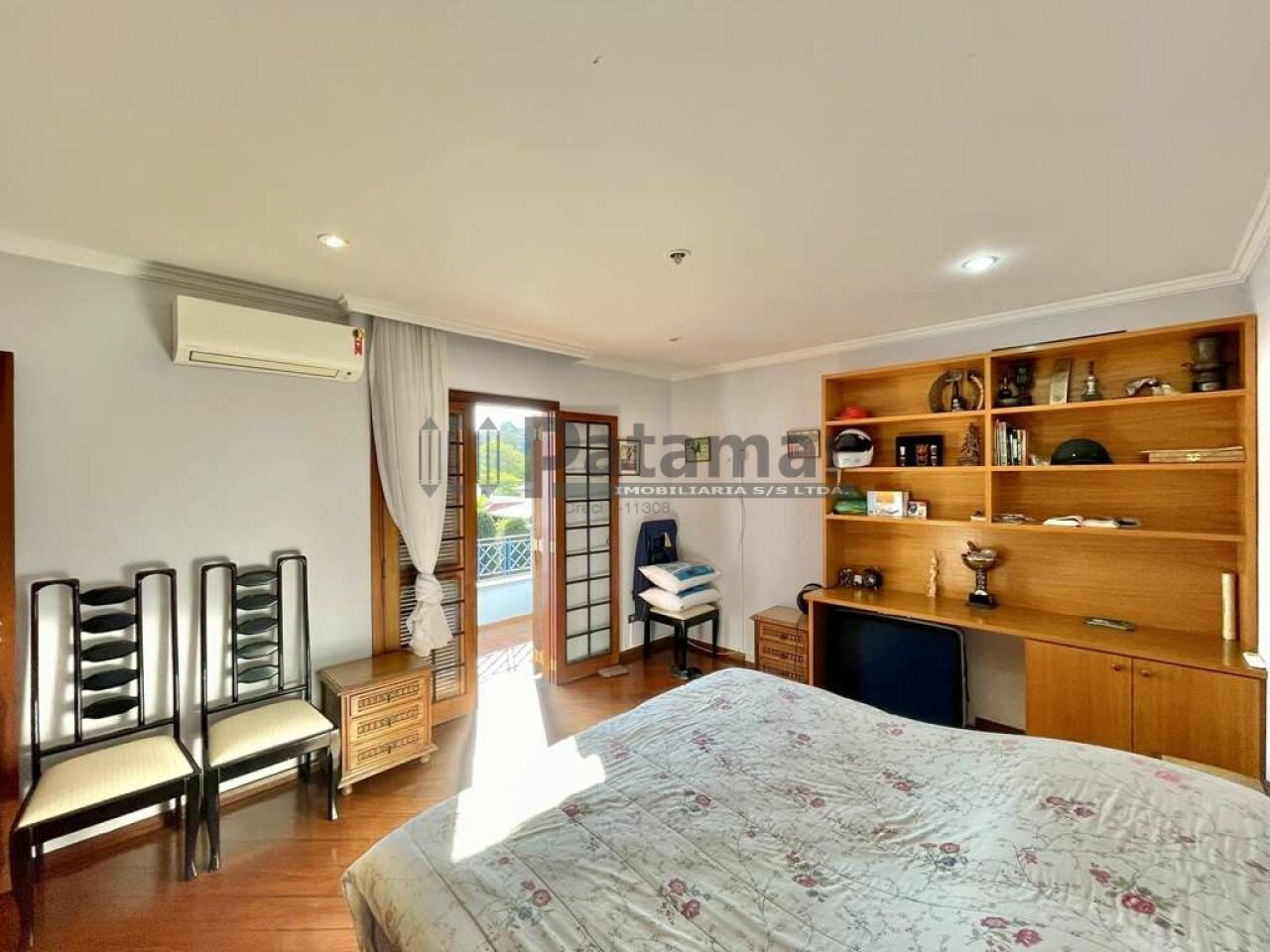 Escritório / Quarto de Hóspedes no térreo com acessibilidade com armários e portas balcão para a varanda