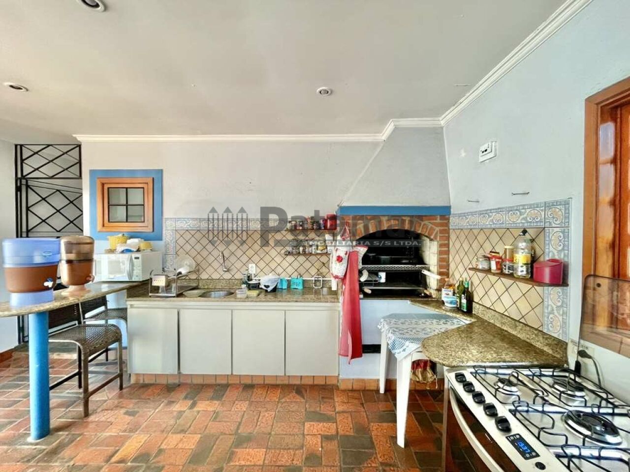 Varanda Gourmet ideal para festas, cozinha completa com churrasqueira, bancada, gabinetes pia inox e balcão