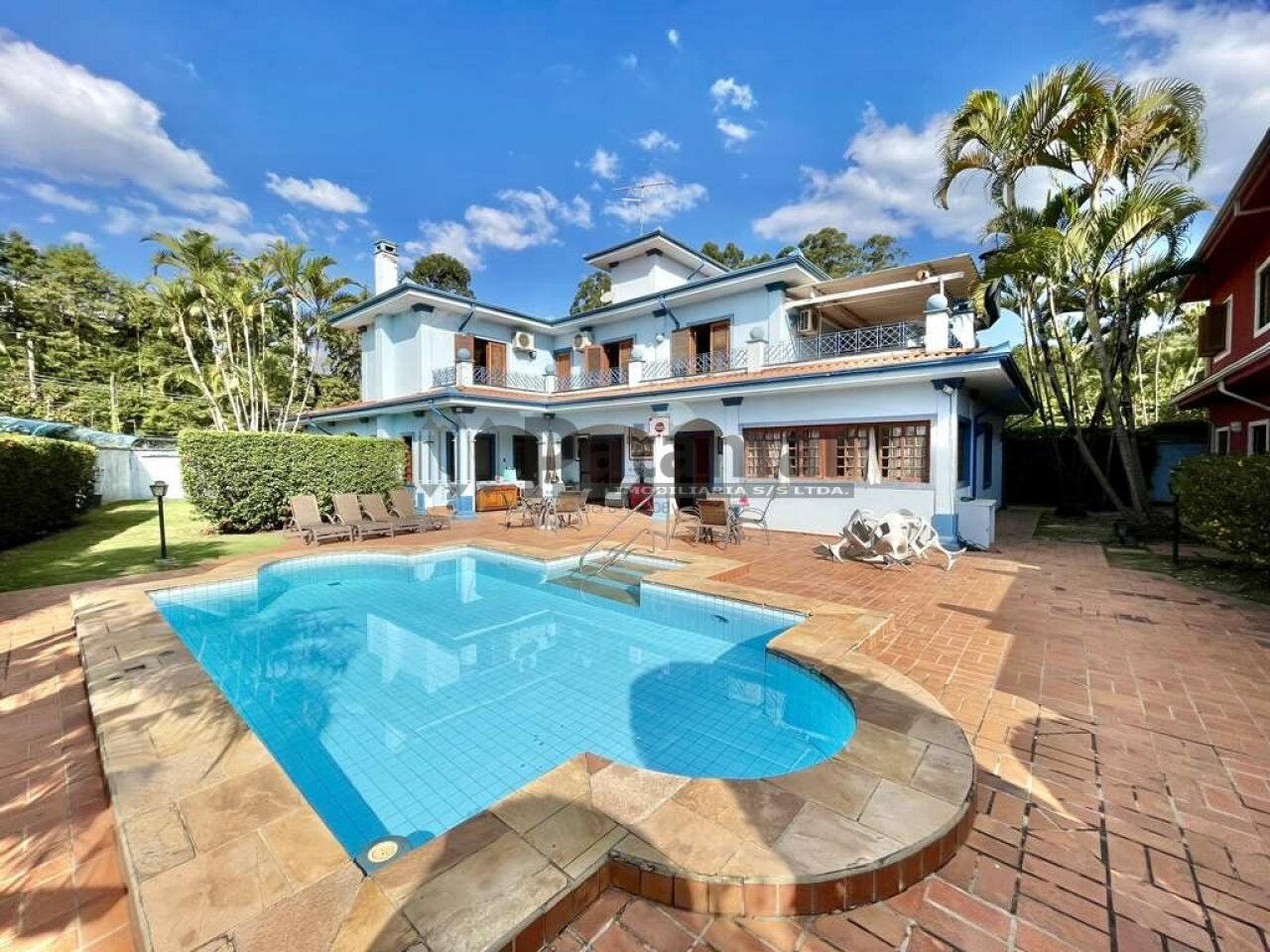 Piscina colonial 8 m x 4 m iluminada, aquecida por trocador de calor, com escada interna, solarium e casa de máquinas