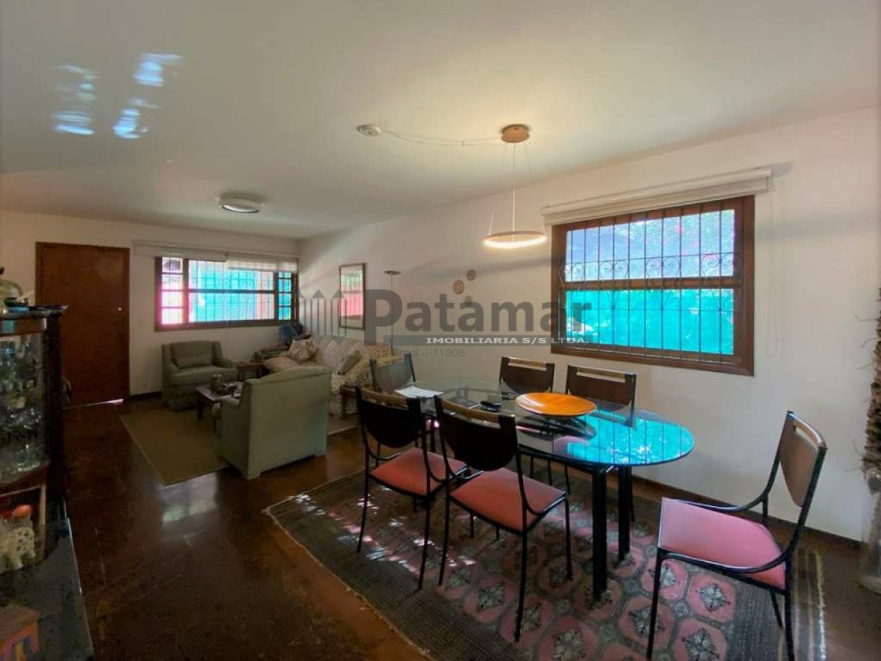 Living para 5 ambientes integrados e voltados para varanda e quintal, com lazer e jardim.