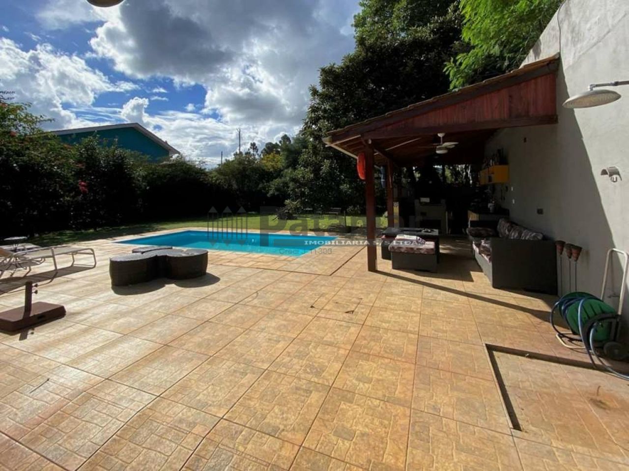 Piscina de fibra (6m x 3m x 1,60 profundidade) com ducha e solarium.