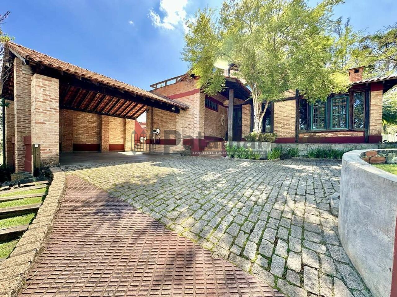 Garagem para 3 vagas, sendo 2 cobertas com carregador para carro elétrico com capacidade de 7kwh, 1 descoberta, além do pátio e rampa de acesso.