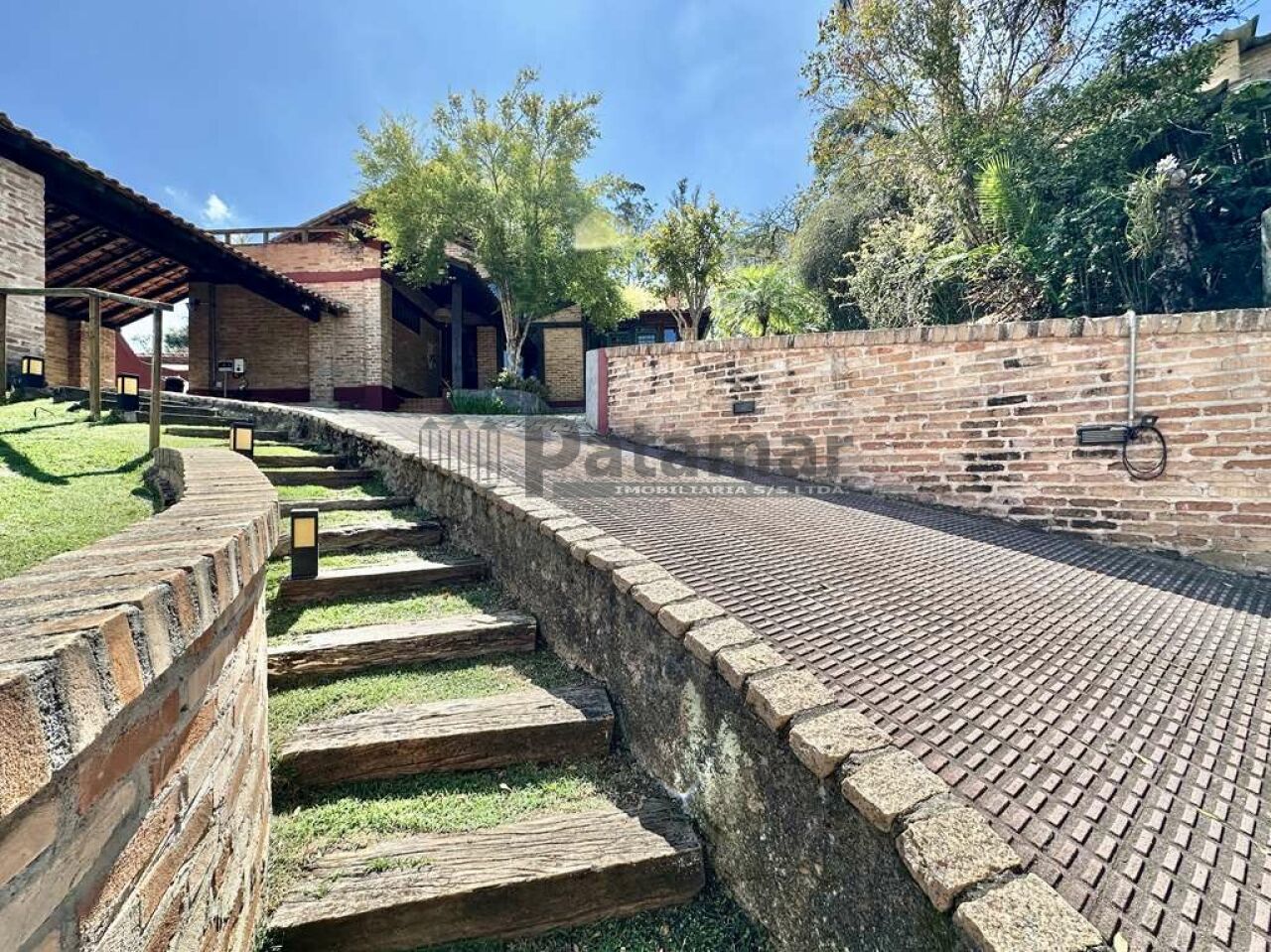 Jardim com paisagismo formado e iluminado, com gramado e frutíferas em produção: jabuticaba, abacate, manga, pitanga, amora, limão.