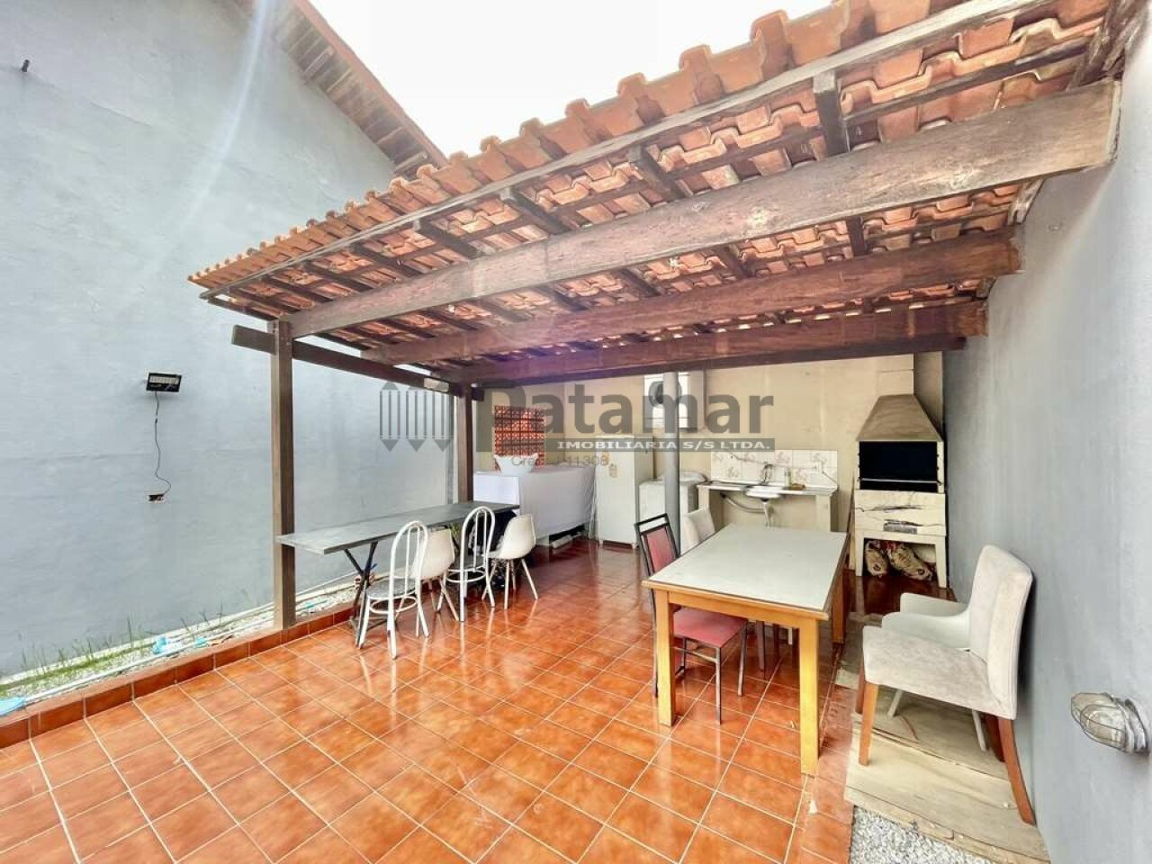 Garagem para até 5 vagas, sendo 2 cobertas e depósito / preparado para banheiro externo.