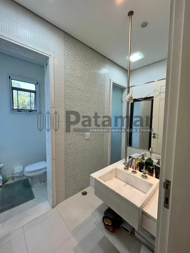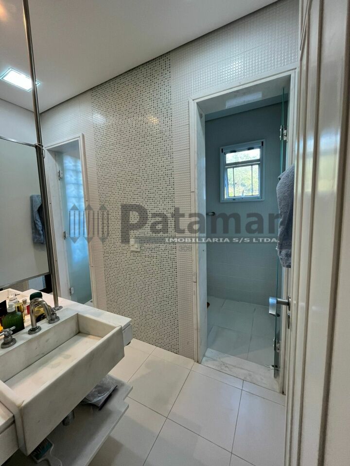 . 2 quartos suítes com o mesmo banheiro e chuveiro, com 2 pias e dois closeds, com varandas individuais