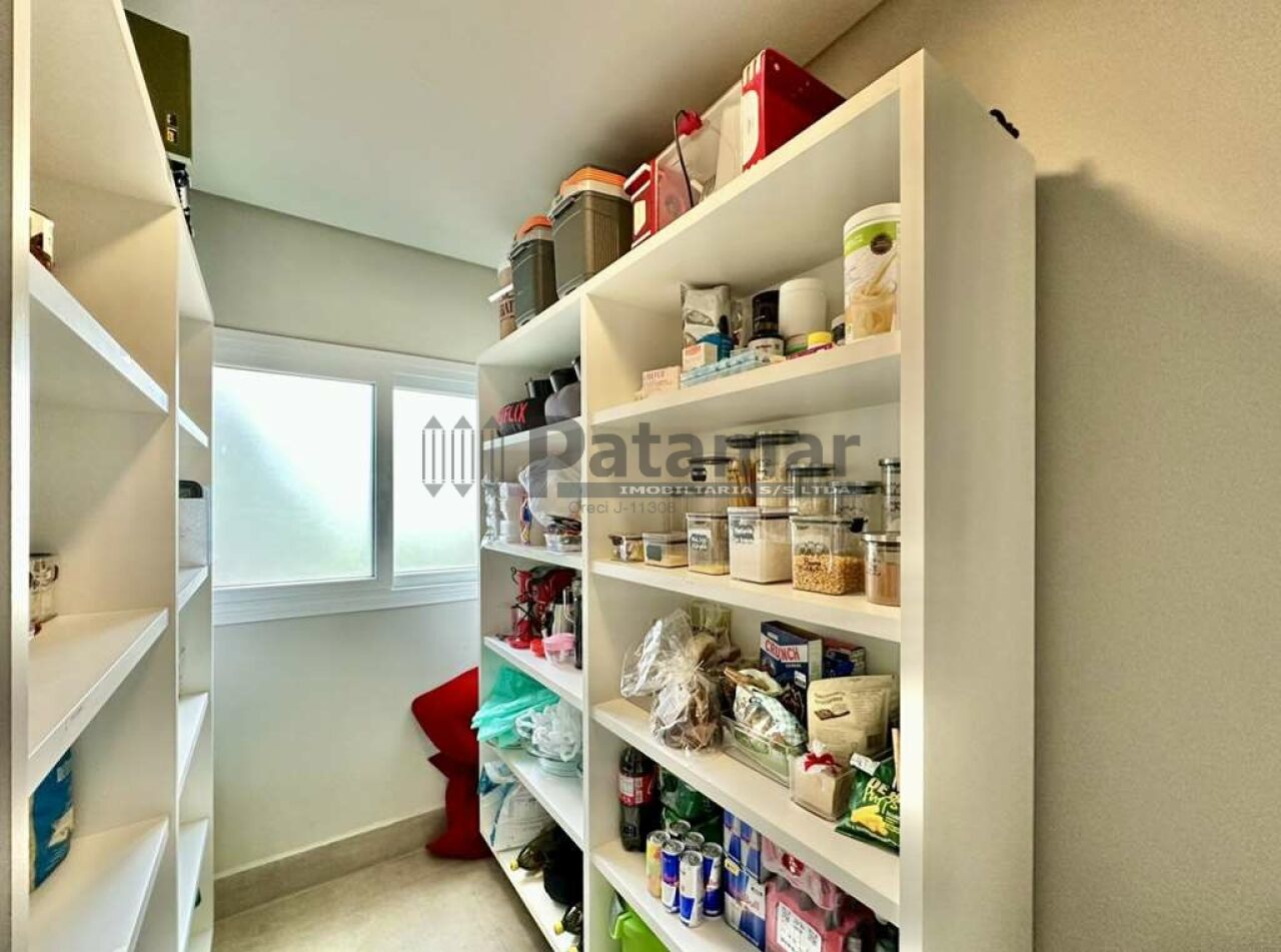 Cozinha integrada ao living com um grande e confortável balcão, em ilha, ideal para almoço, café e aperitivo. Fogão 5 bocas com coifa, bancada em ?L?, com 2 cubas inox. Forno, micro, máquina de lavar, tudo Brastemp e grande despensa.