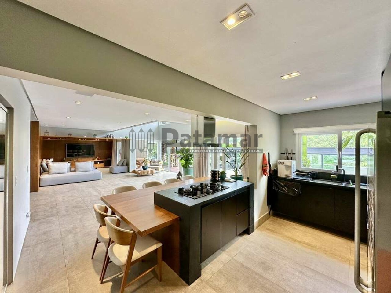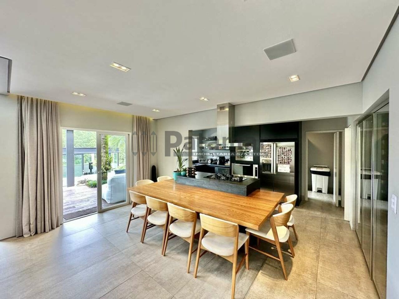 ANEXO GOURMET / SALAÕ DE FESTAS MULTIUSO envidraçado com grandes portas de correr. Ideal para festas, jogos, academia e música, com ar condicionado de teto, projetor, churrasqueira em inox e vidro, coifa inox, bancada em ?L? com pia inox, armários, gabinetes planejados e frigobar. Ilha grande com bancada para 6 lugares, gabinetes, fogão de indução, forno, pia.