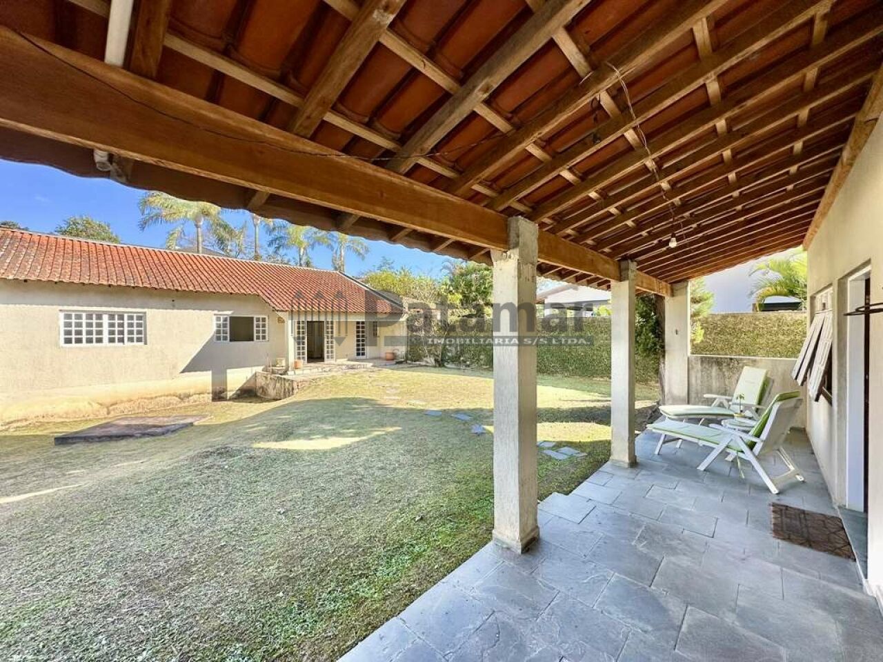 A casa fica em frente à área de lazer do condomínio (quadras, campo society , playground salão festas, etc)