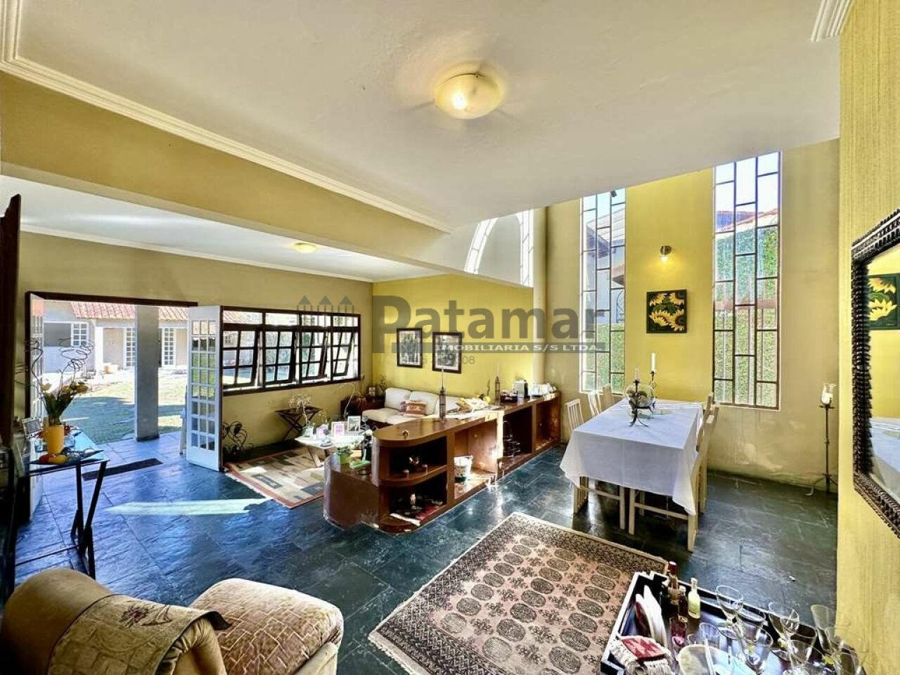 Living para 3 ambientes com pé direito de 7m, com possibilidade para mezanino, voltado para varanda e quintal.