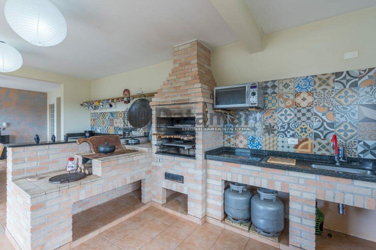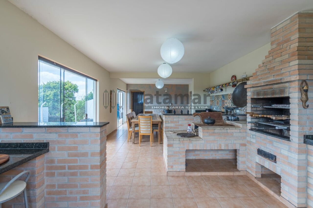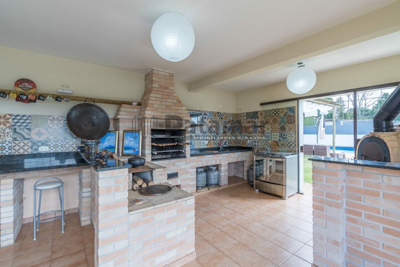 Área gourmet com churrasqueira, forno pizza, fogão a lenha e cozinha