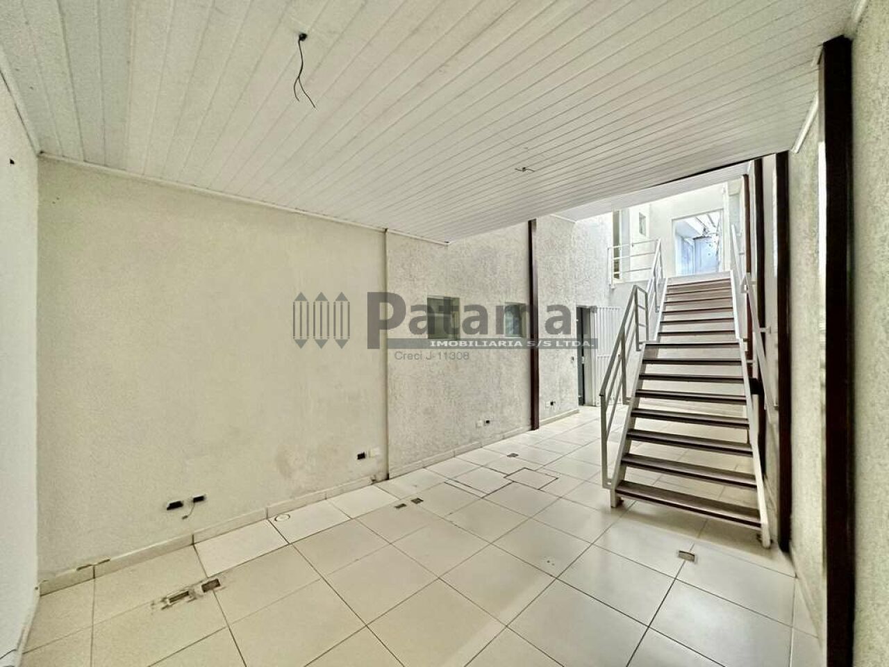 Entrada de pedestres pelo térreo, com acesso pela escada, direto ao piso superior.