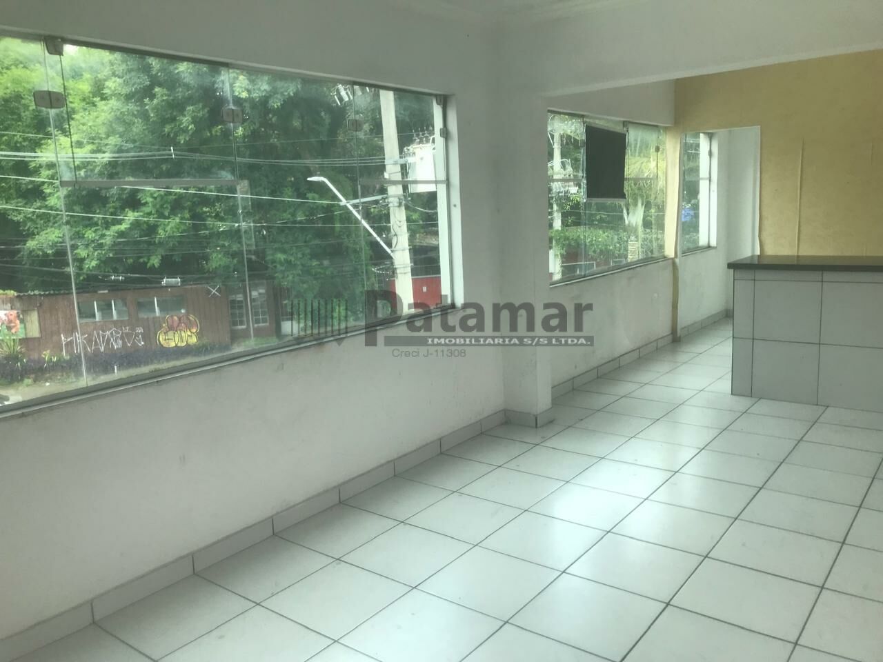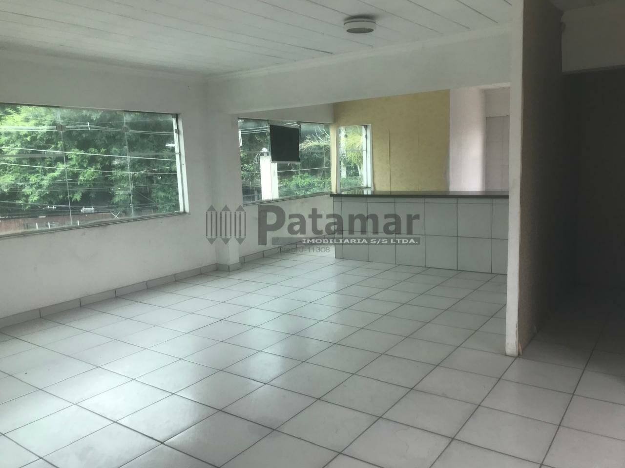 Piso térreo de 300 metros quadrados, 4 banheiros, copa e vagas de estacionamento frontais.