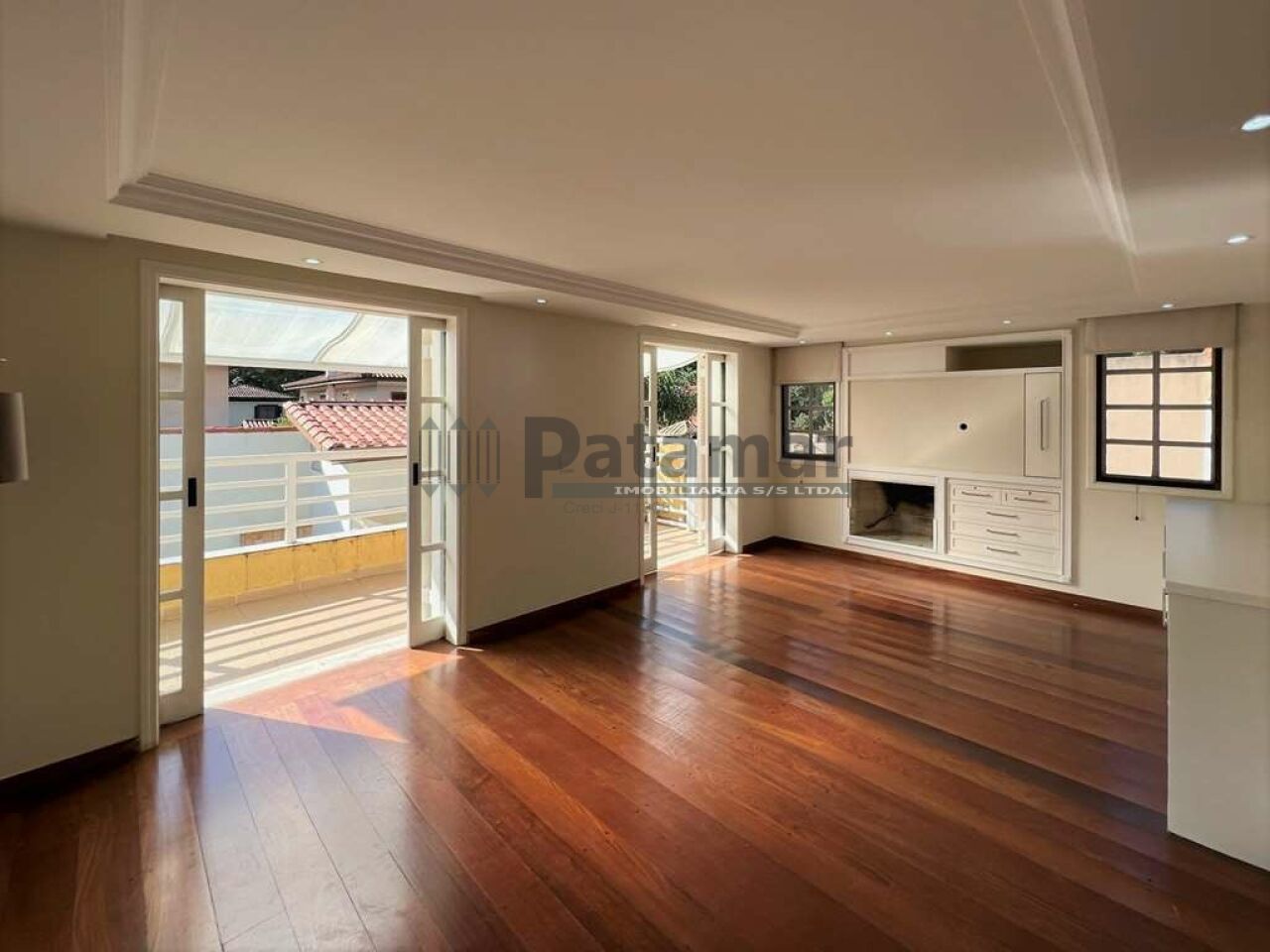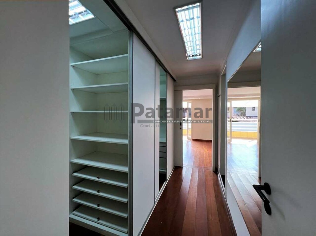 Suíte master bem ampla, com closet sr e sra, duas portas-balcão dando para um grande terraço voltado para a piscina.