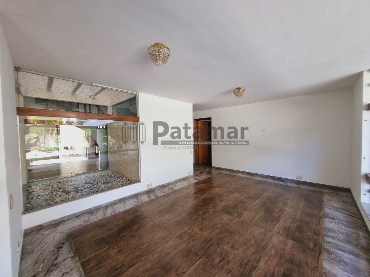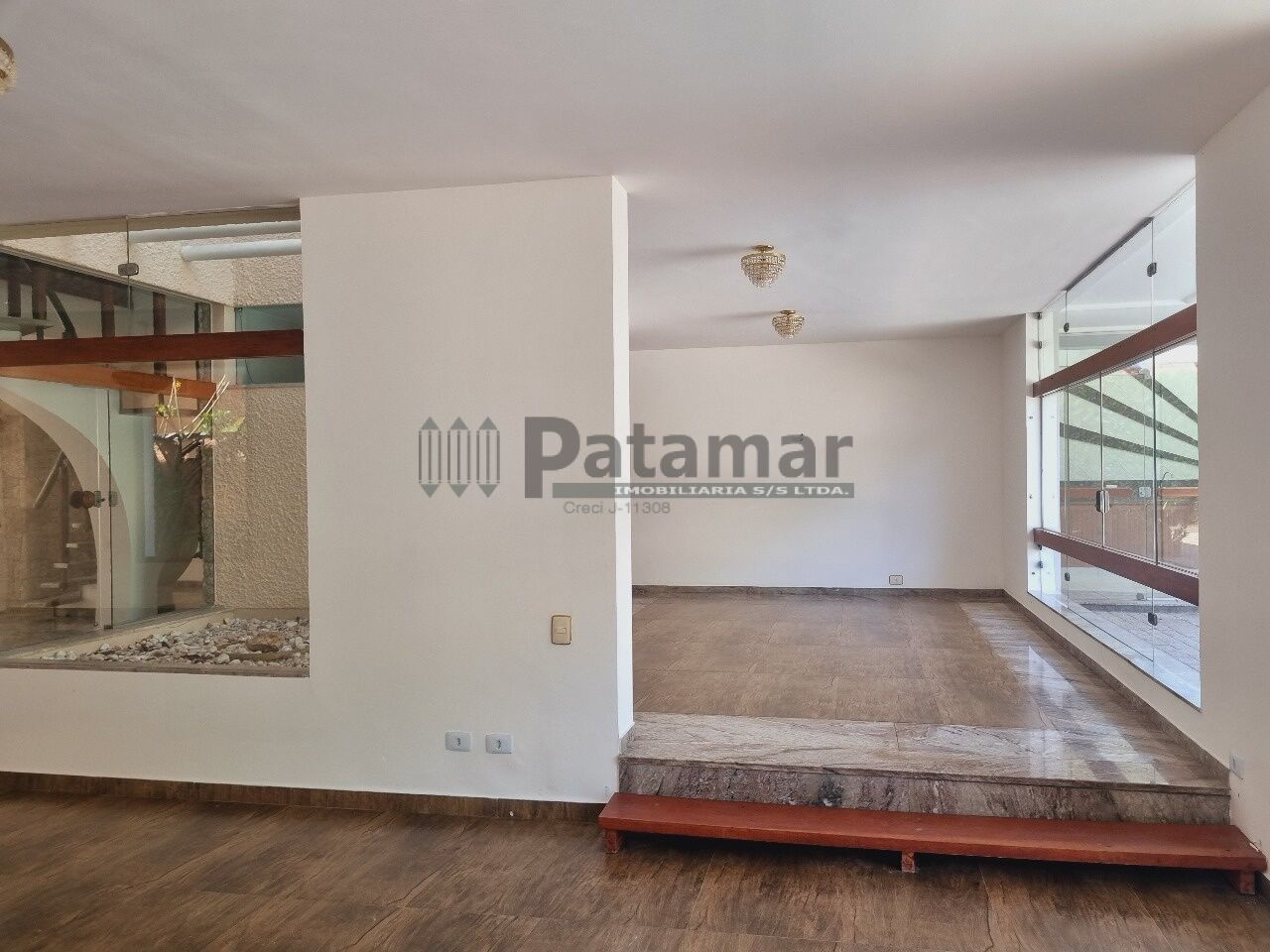 A casa reúne espaço e funcionalidade para a vida familiar: living para dois ambientes, sala de jantar, escritório planejado, salas de TV e de brinquedos, além de jardim de inverno que valoriza iluminação natural.