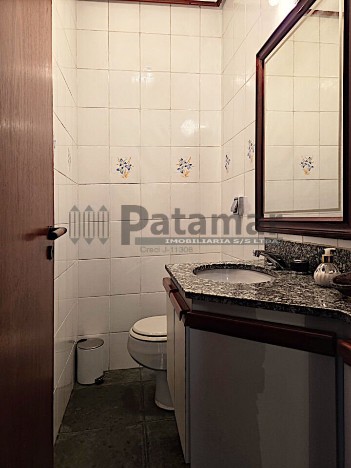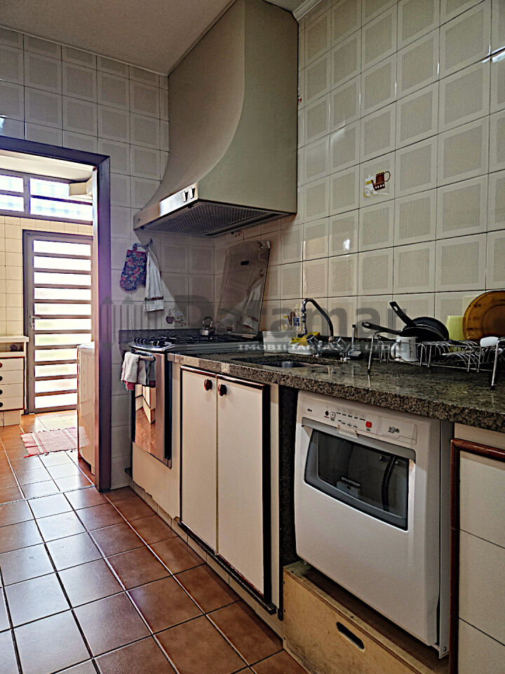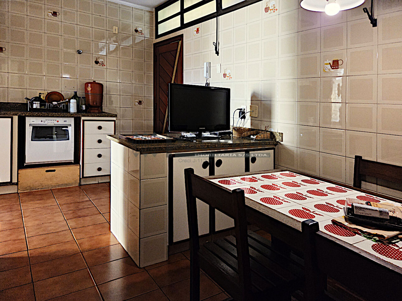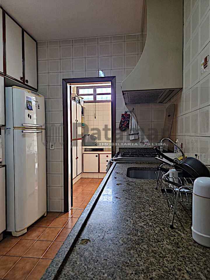 A cozinha é ampla, com despensa, e integrada à área de serviço, que inclui lavanderia e dependência de serviço com banheiro.