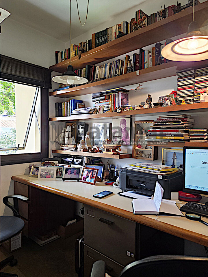 A área íntima conta com 4 dormitórios, sendo 1 suíte com banheiro privativo e closet, além de 1 banheiro social. Há ainda escritório, ideal para home office.