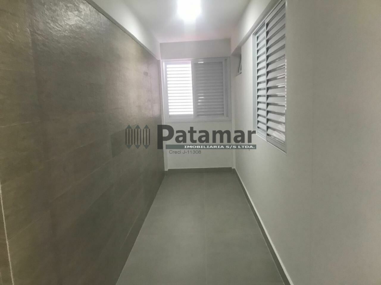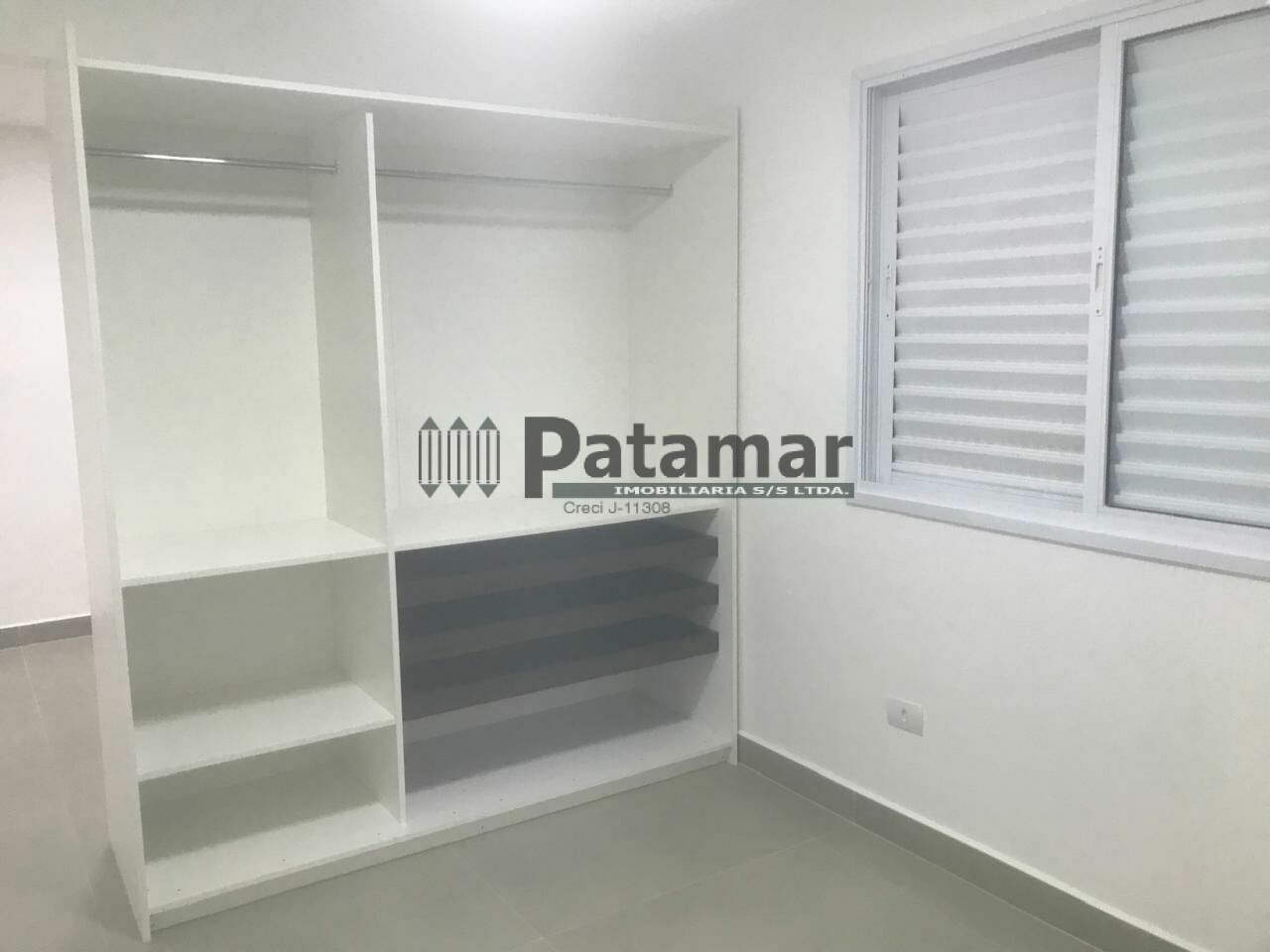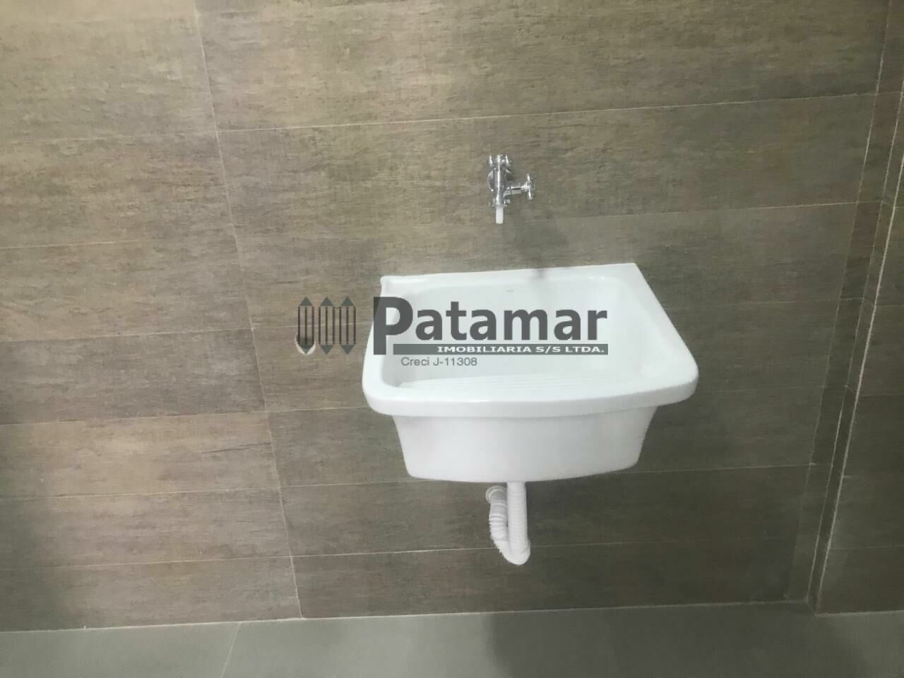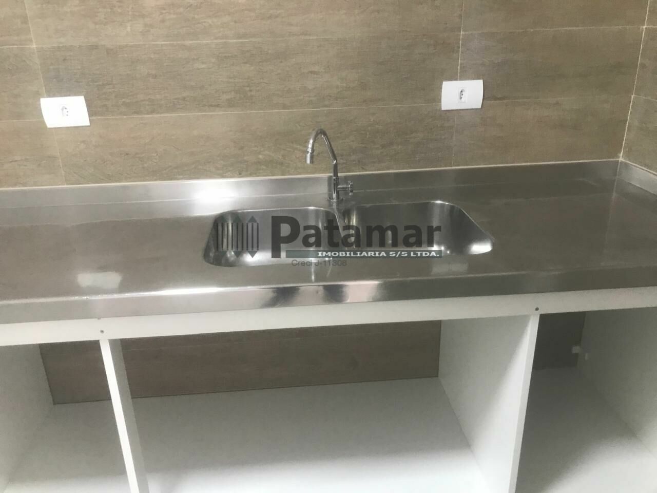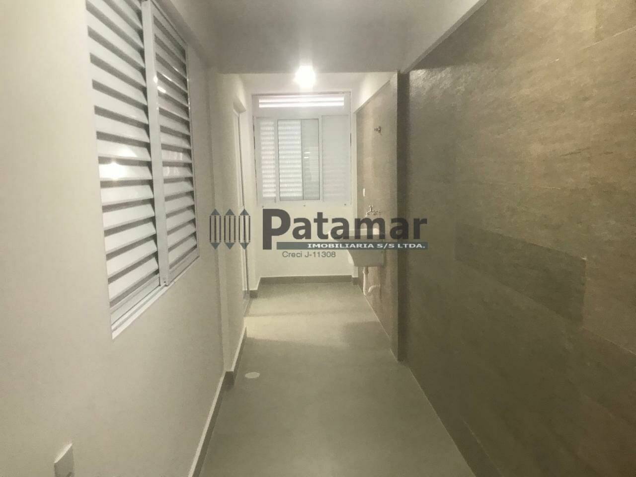 Apartamento com um dormitório, banheiro, sala integrada com cozinha e área de serviço.