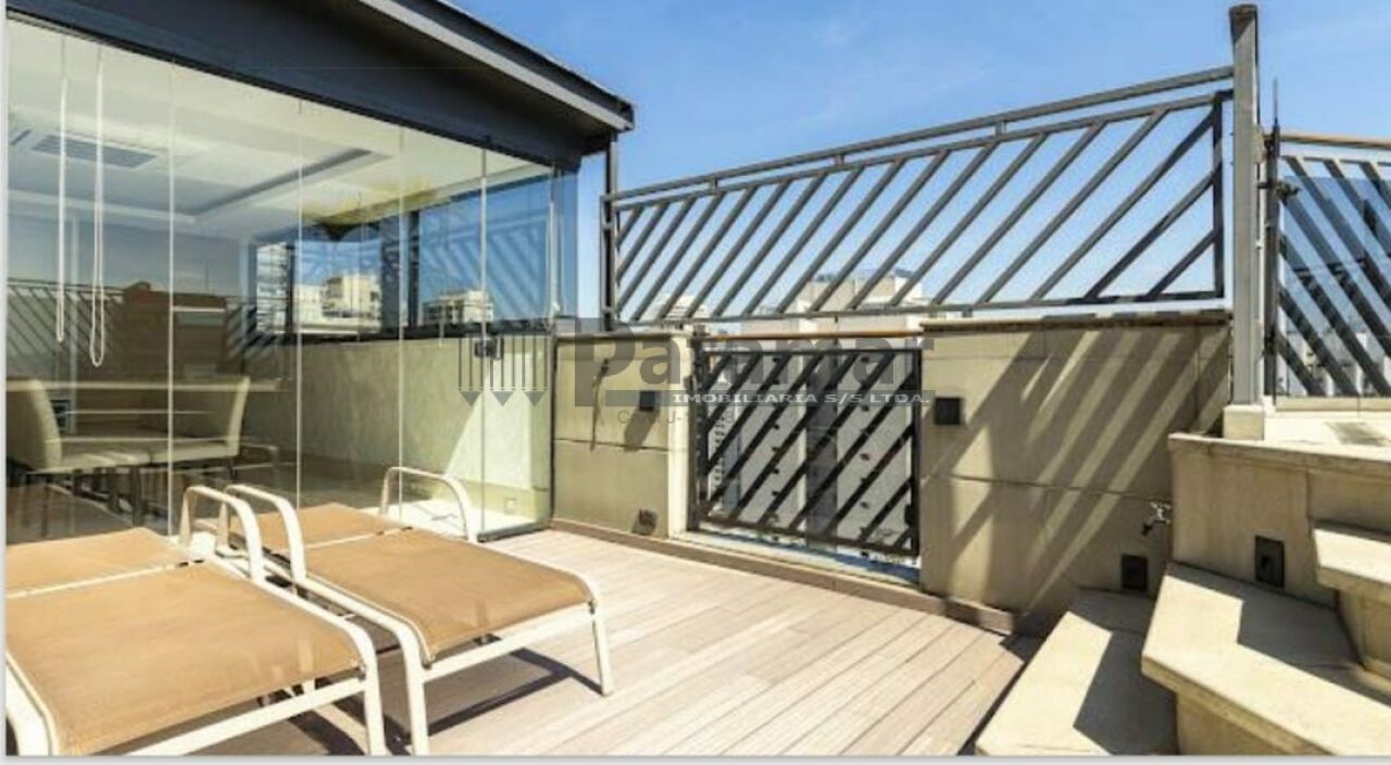 Cobertura Duplex no Campo Belo com 440 m2, 4 vagas de garagem juntas, 1 apartamento por andar, no total de 18 apartamentos (uma única torre); elevador social, elevador de serviço.