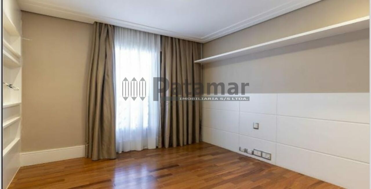 Piso em madeira, papel de parede, cortina, lustre, armário da Artigiano, painel de madeira feito por marcenaria especializada, cabeceira em laca