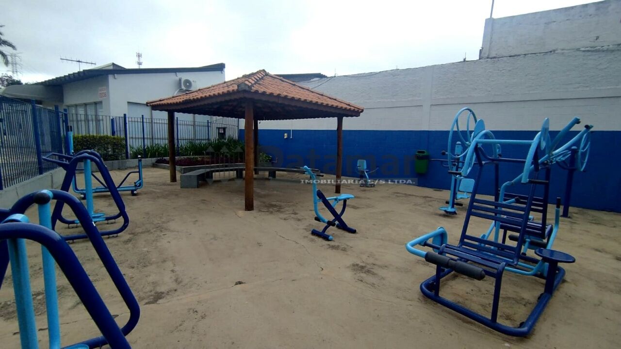 O condomínio possui área de lazer com piscina, playground, quadra poliesportiva, academia ao ar livre e salão de festas.