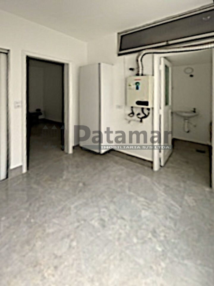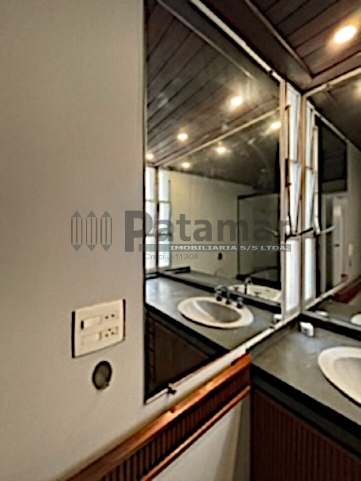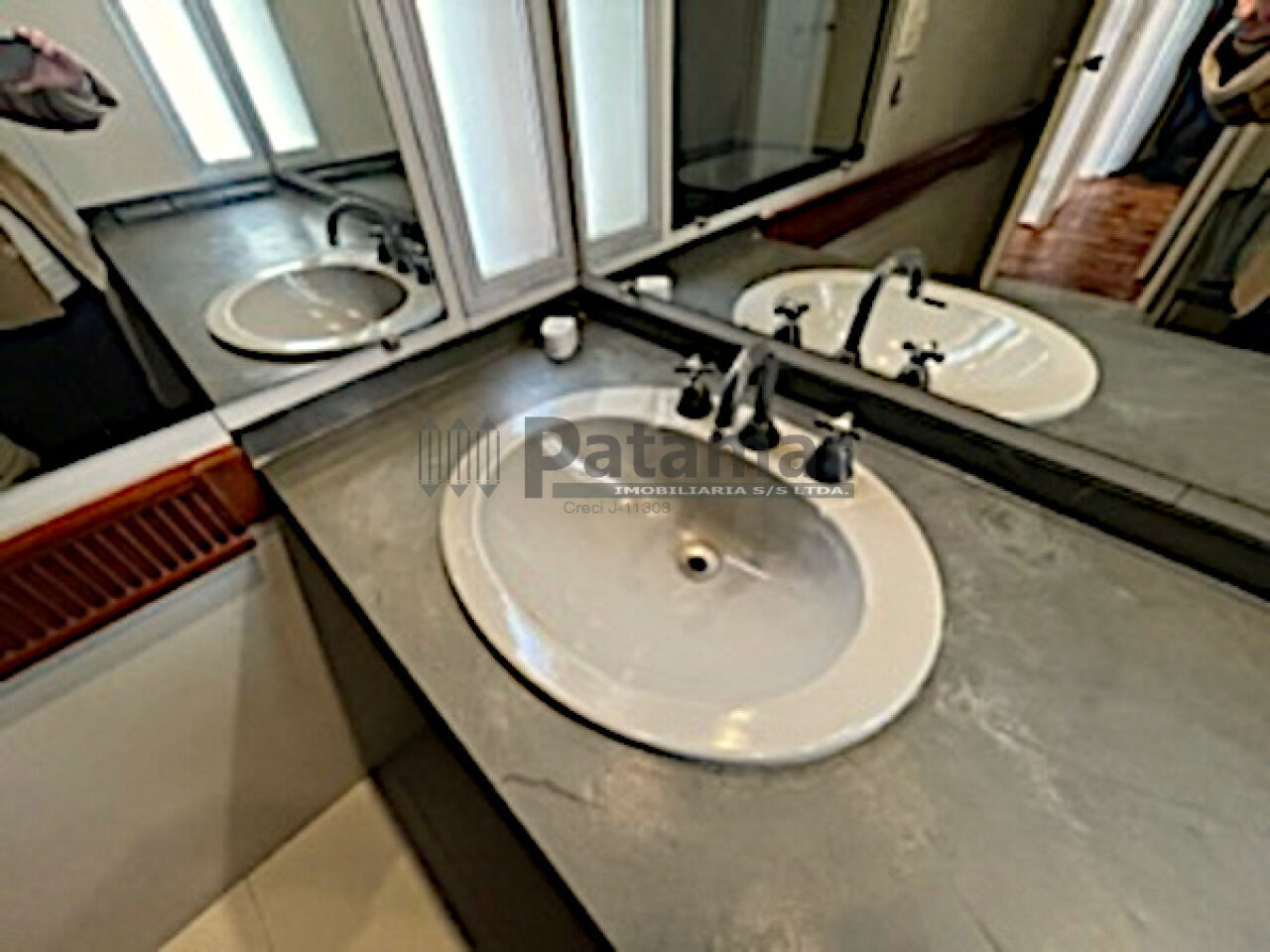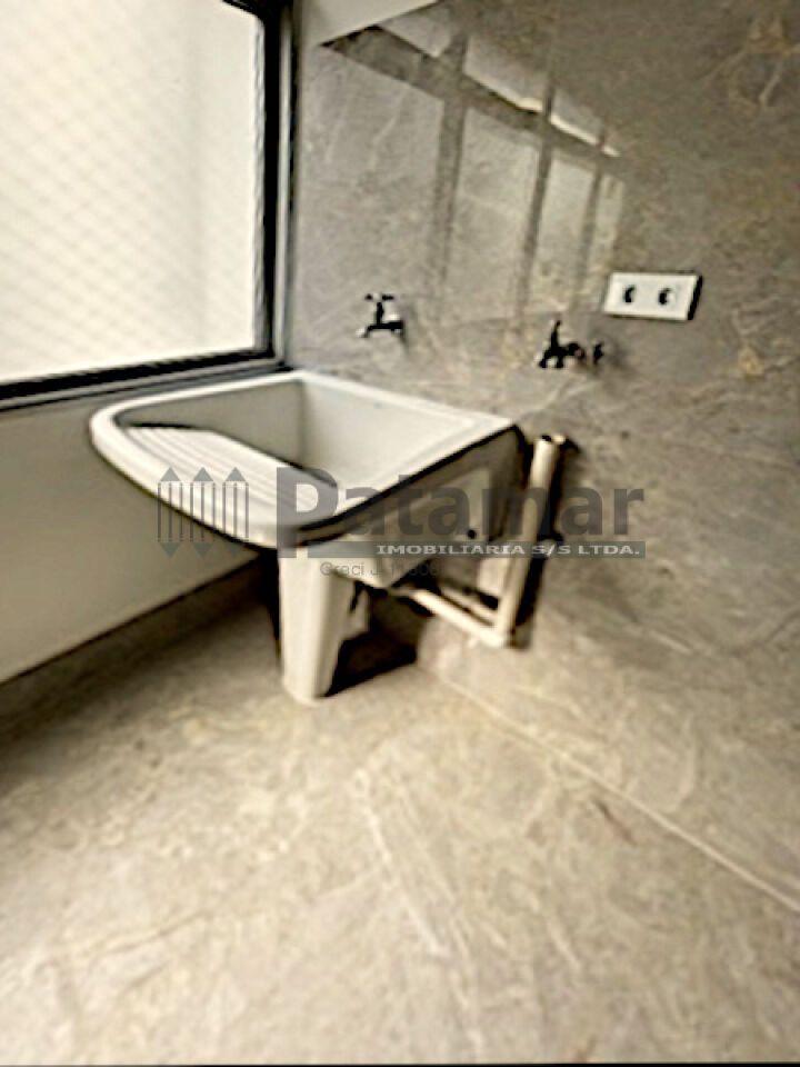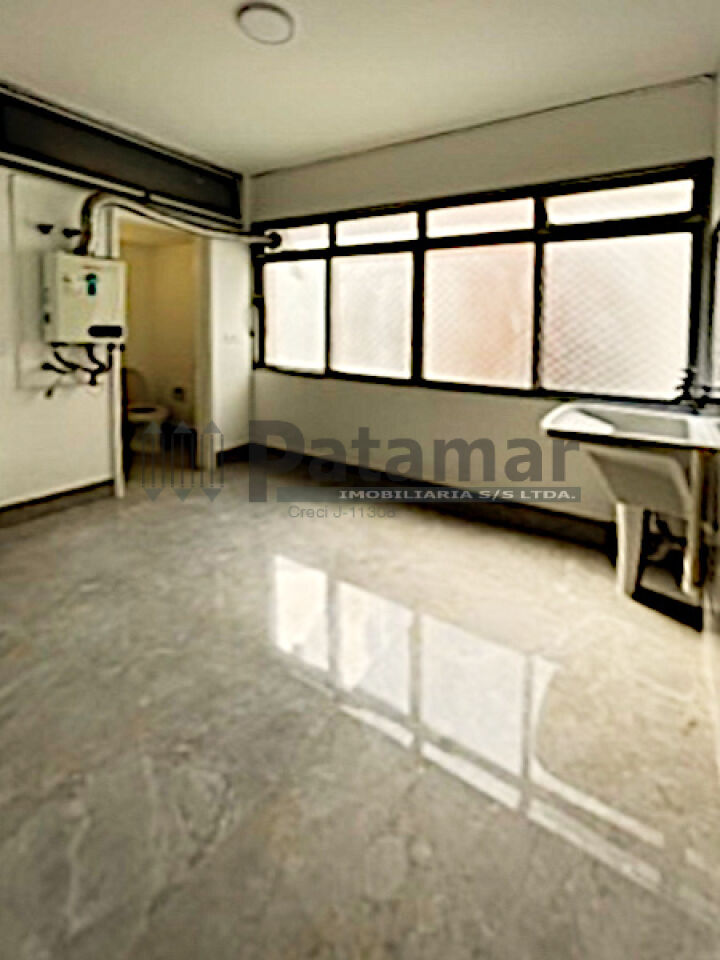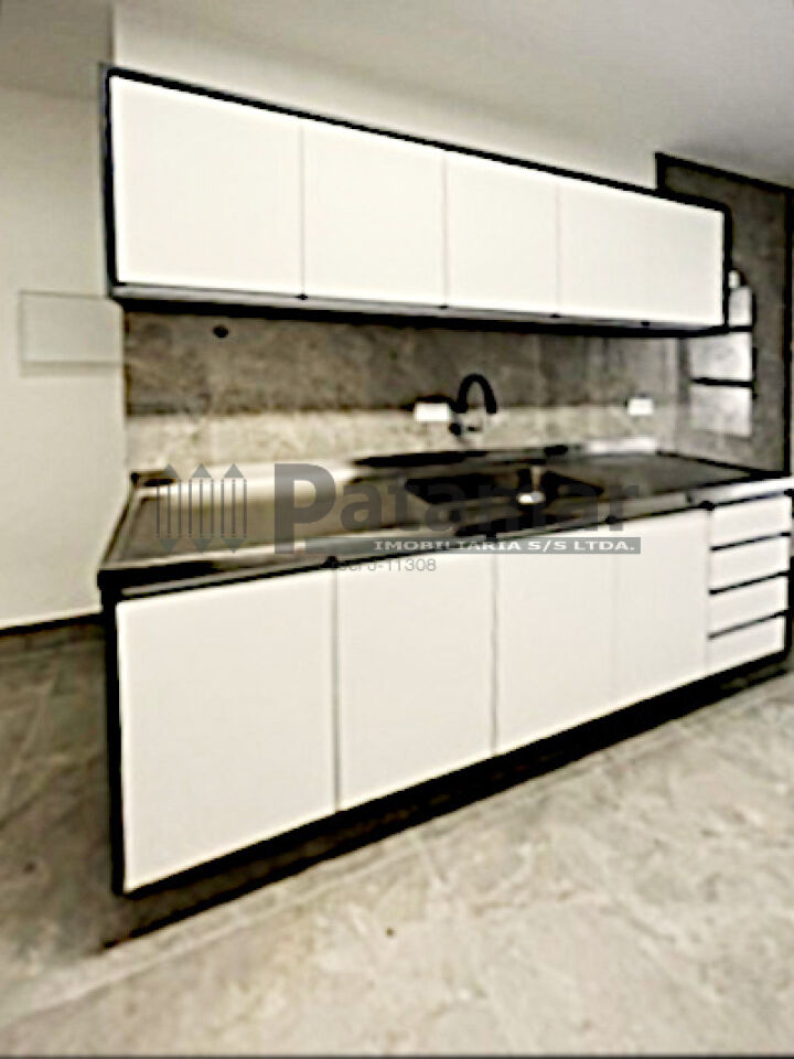 Cozinha funcional, com boa ventilação, integrada à área de serviço. Conta ainda com dependência de empregada e banheiro de serviço.