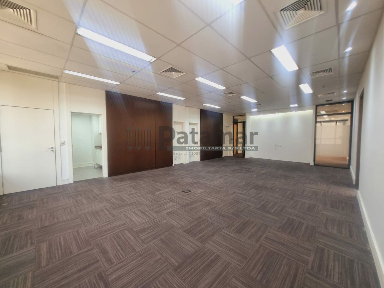 Imóvel medindo 299,10 m² de área útil, com ar-condicionado Central, 3 Salas de reuniões e Copa.