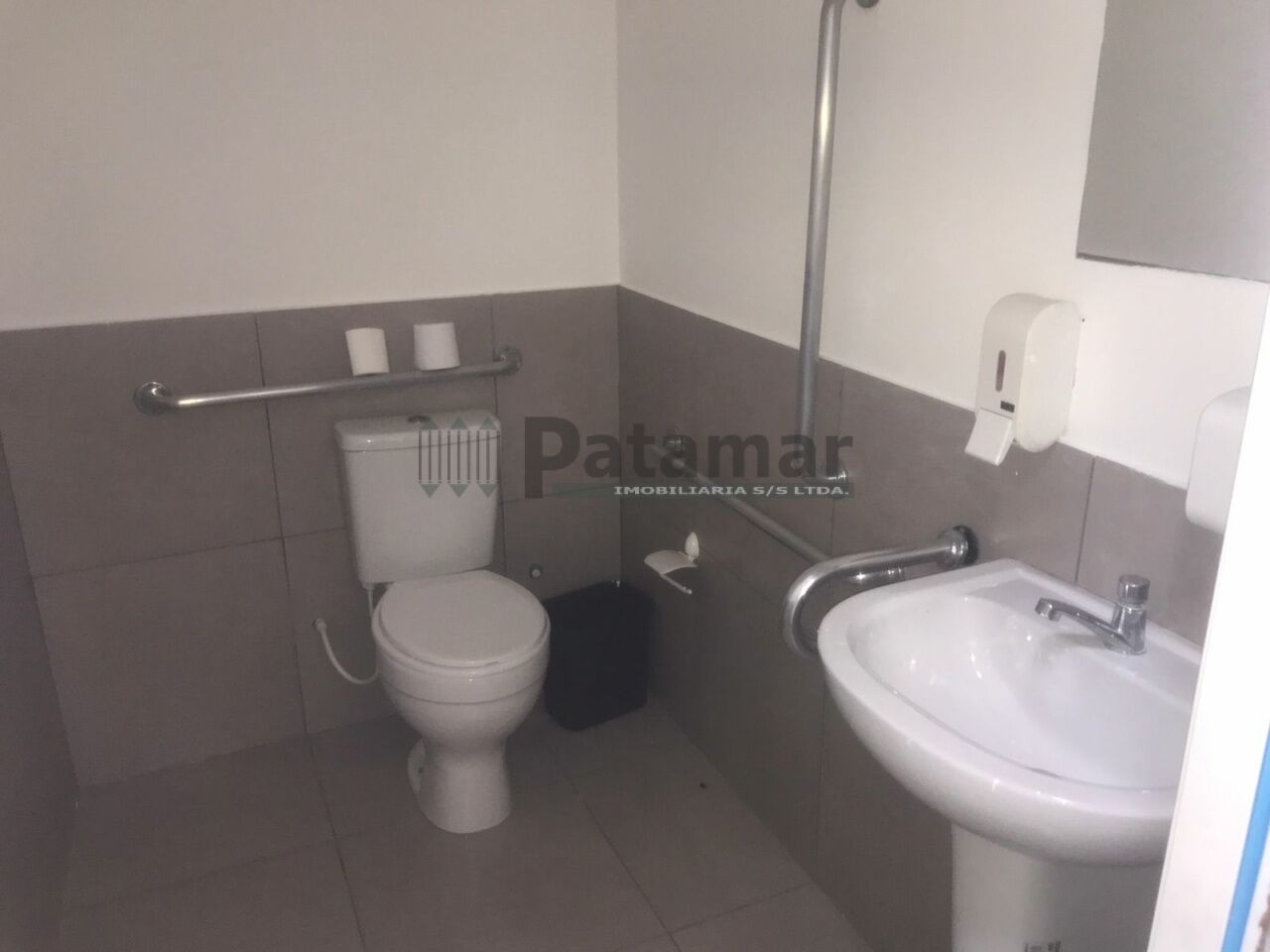 Na parte debaixo possui copa e dois banheiros, e no mezanino possui escritório e um banheiro.